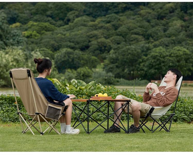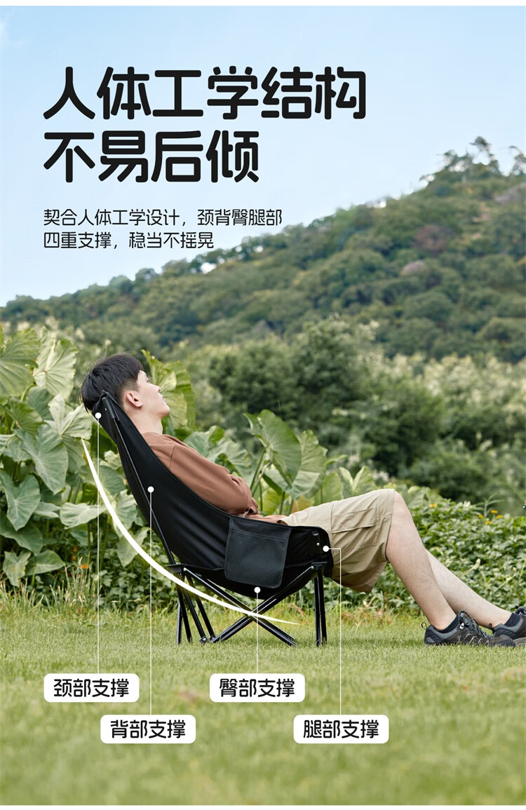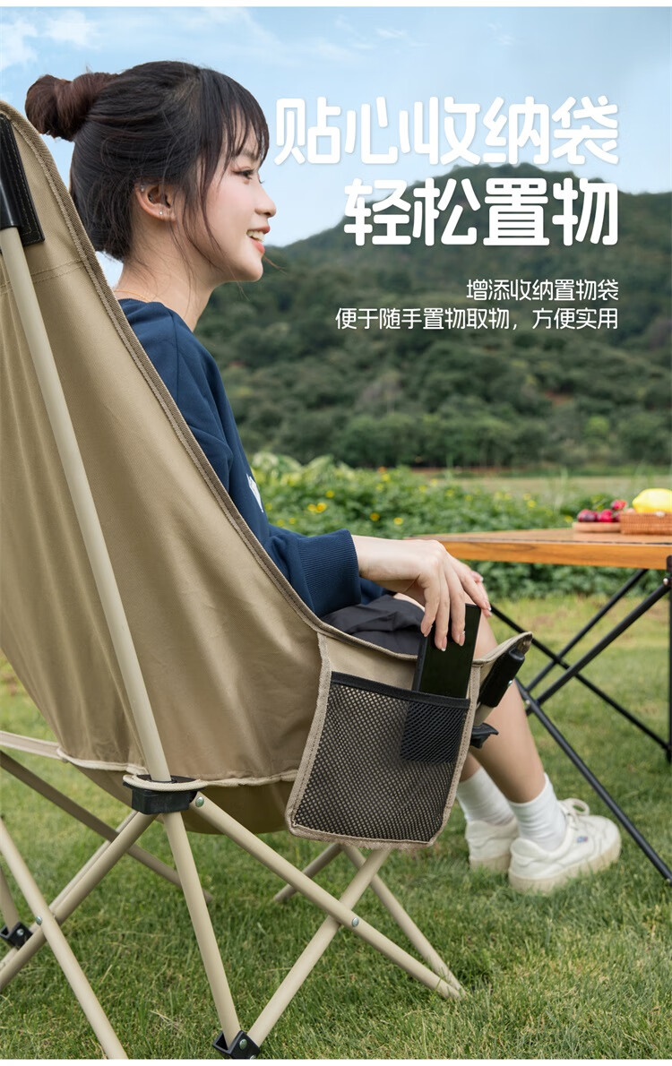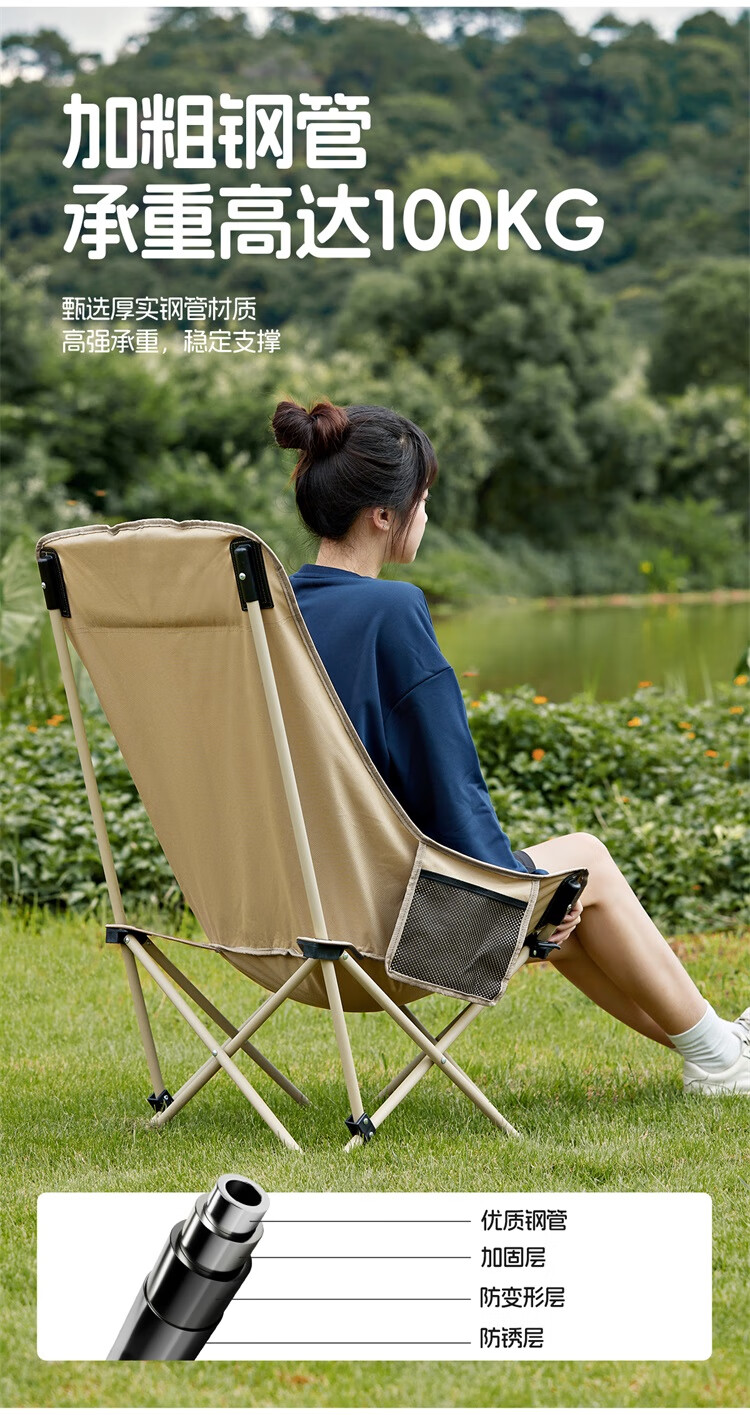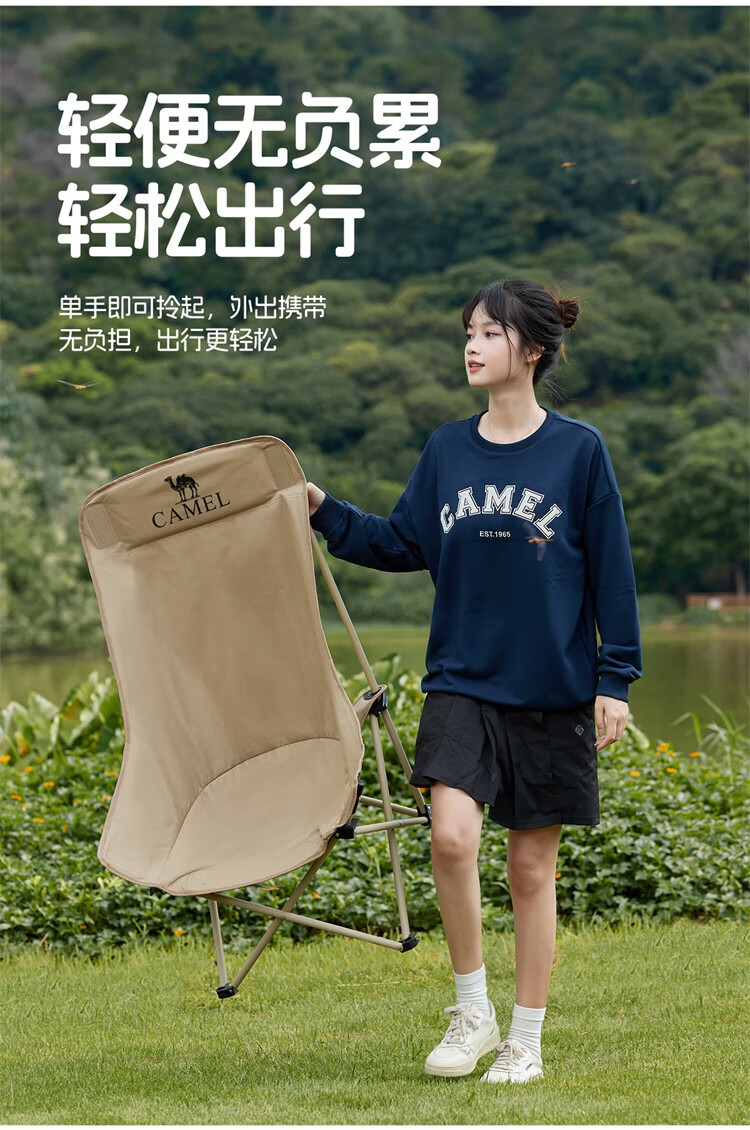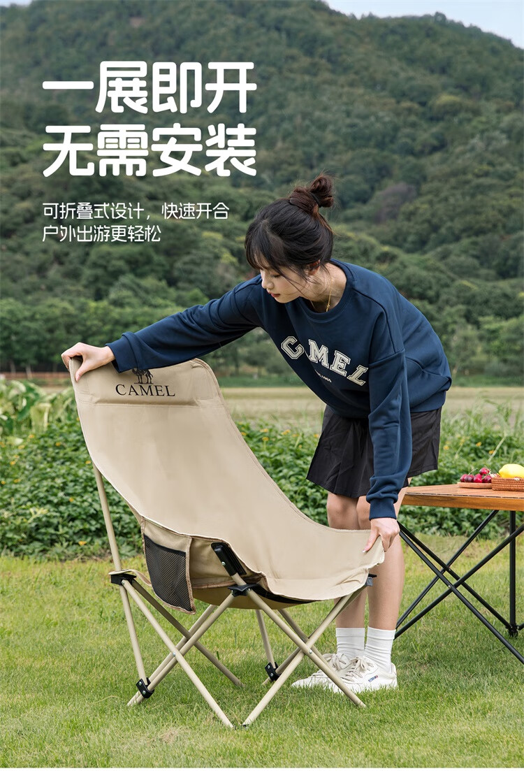 • 骆驼(CAMEL)户外折叠椅子结实便携式轻露营钓鱼导演凳月亮椅车载休闲躺椅野餐 高背月亮椅 赠收纳袋 卡其色173CAHD080F