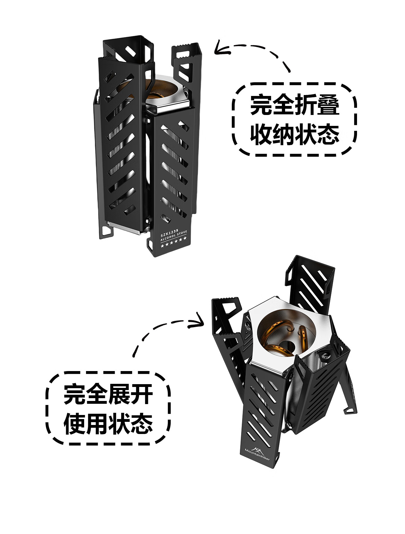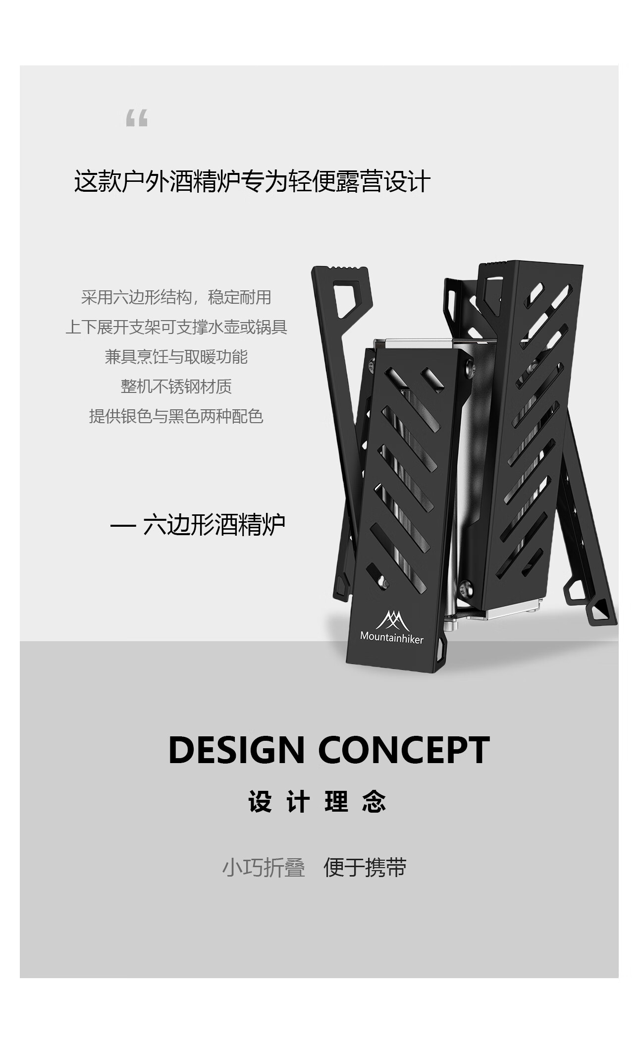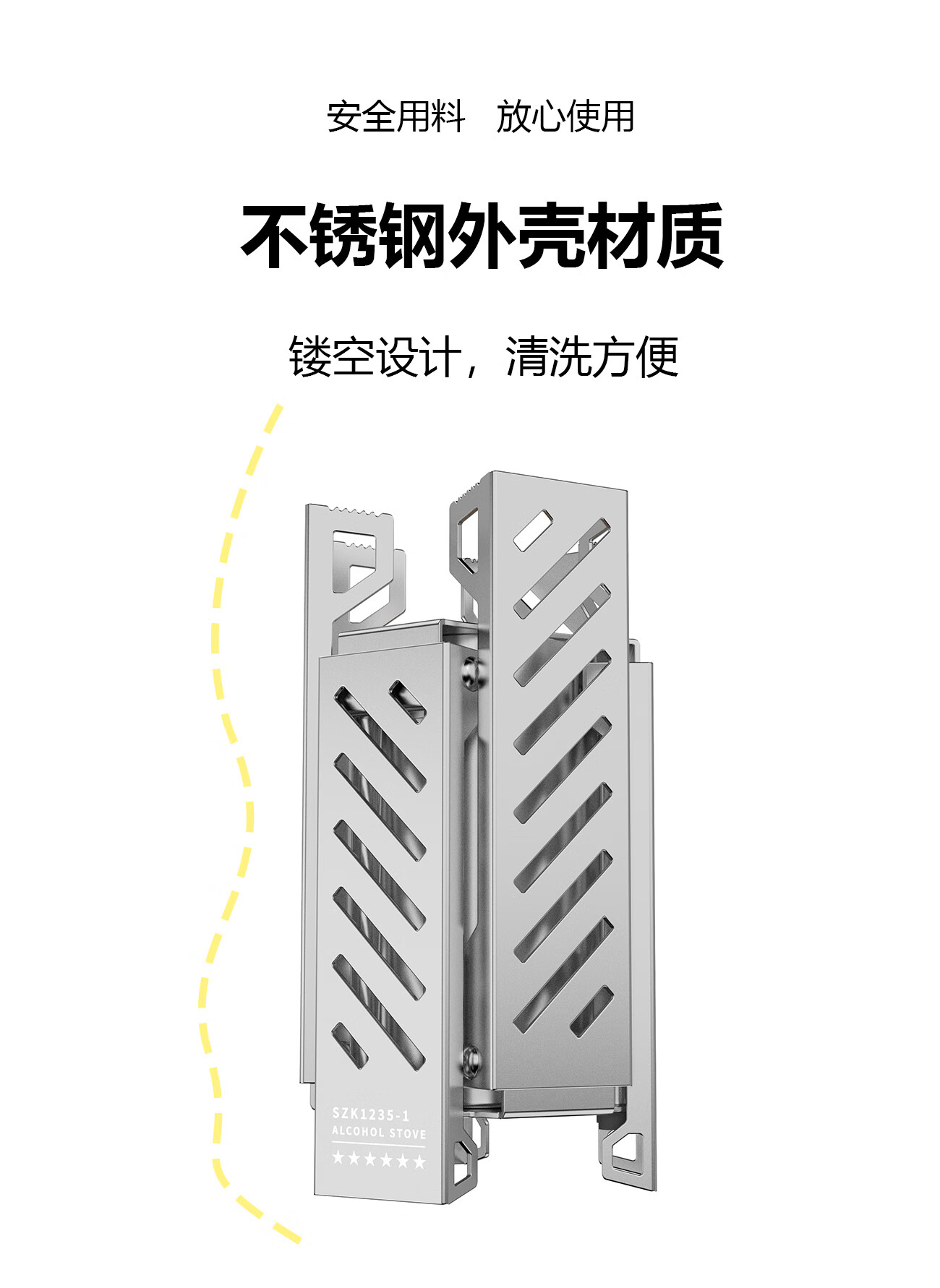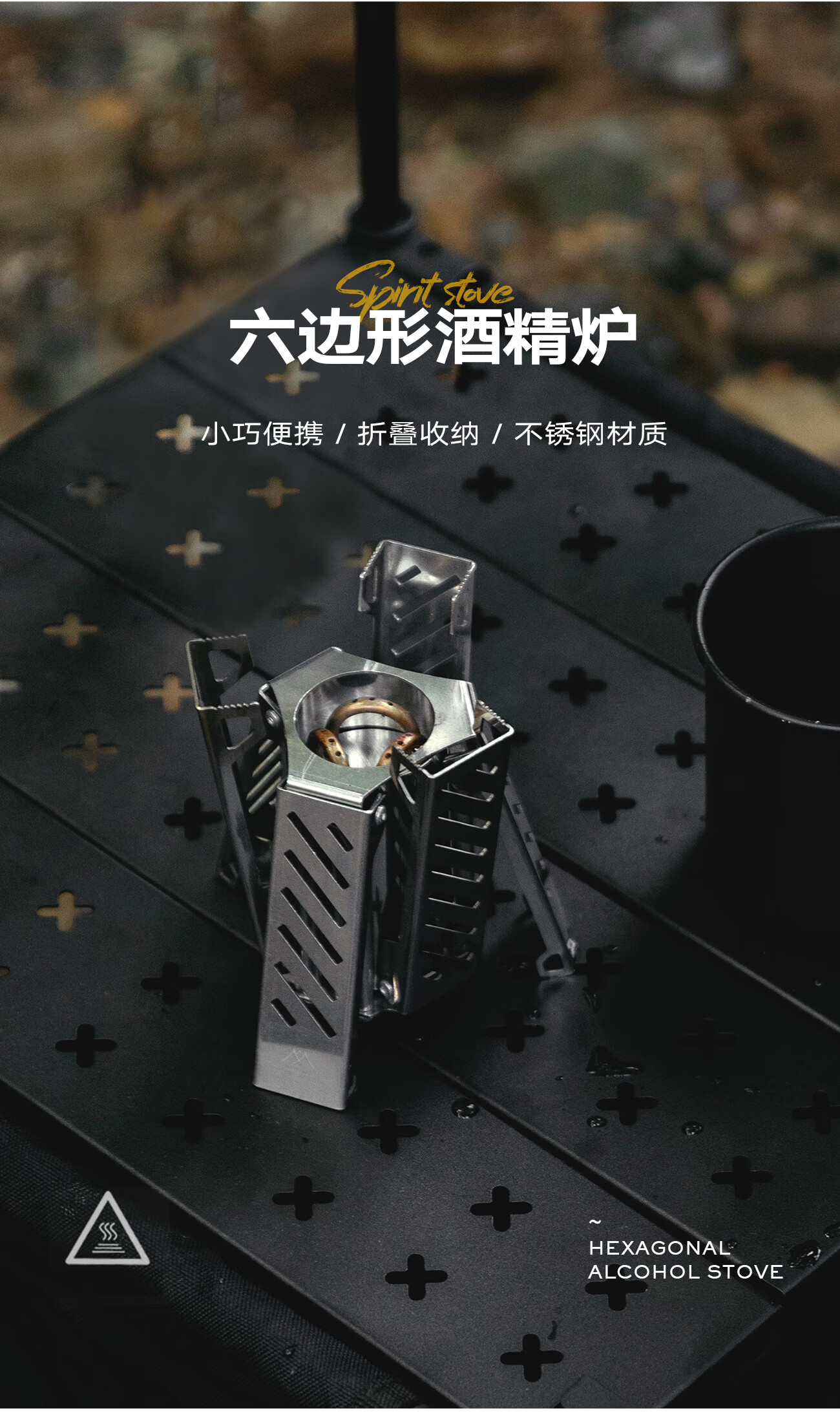 山之客新款六边形酒精炉高续航野炊户外露营便携折叠一体式炉架 六边形酒精炉-银色