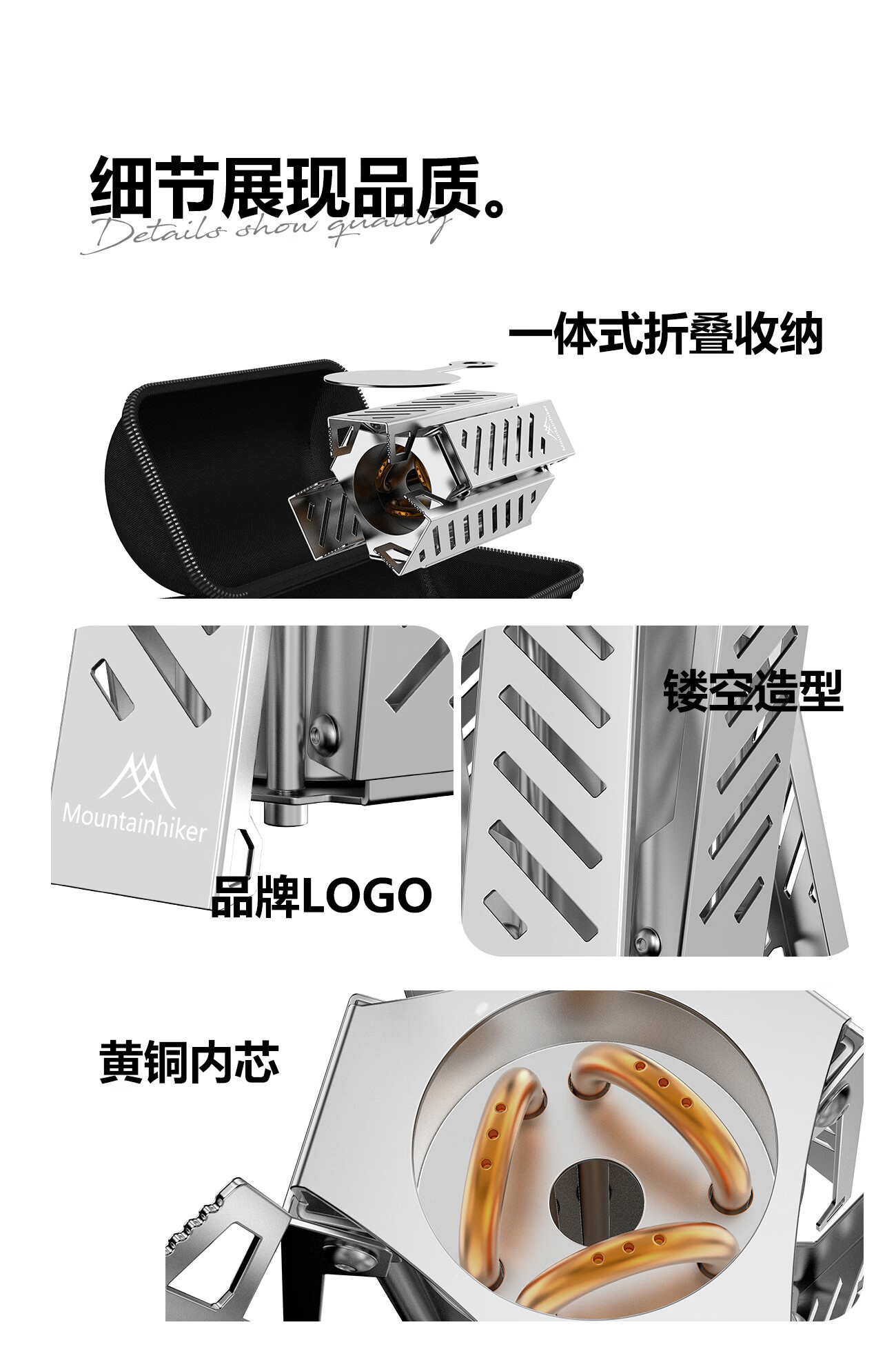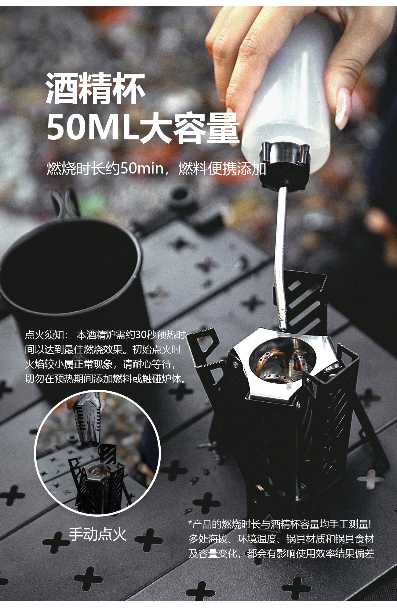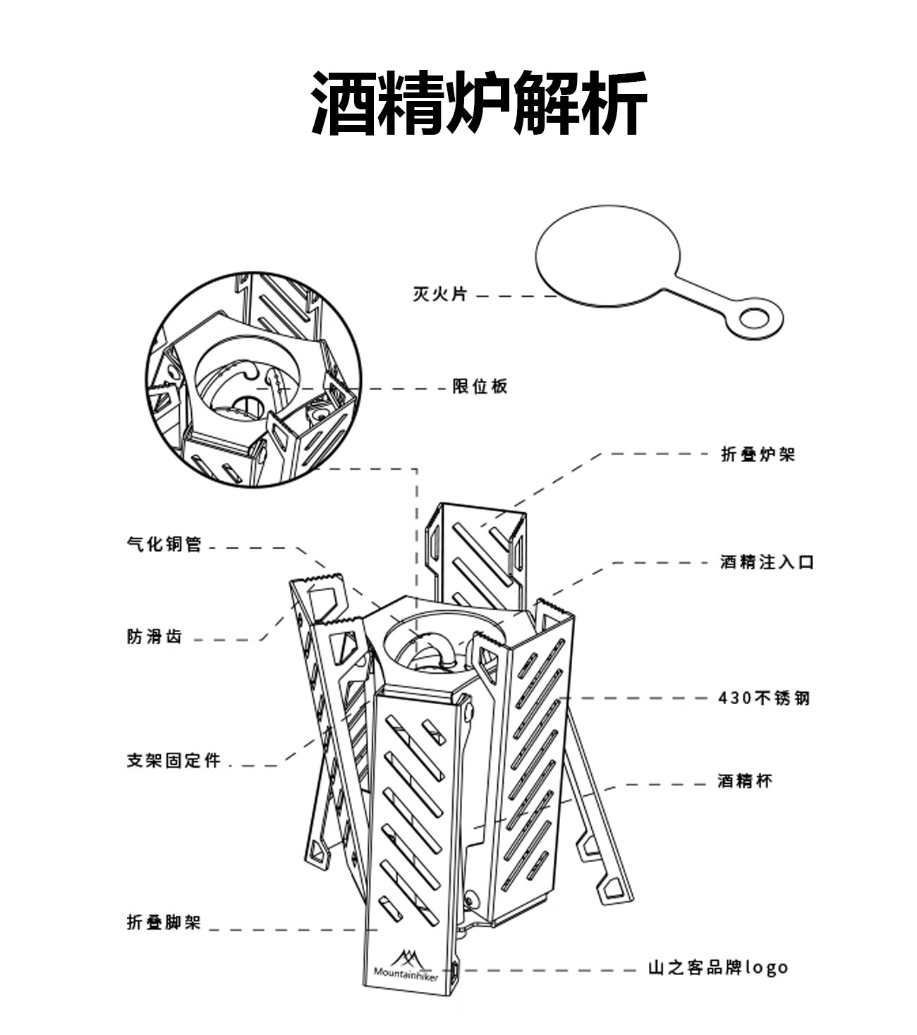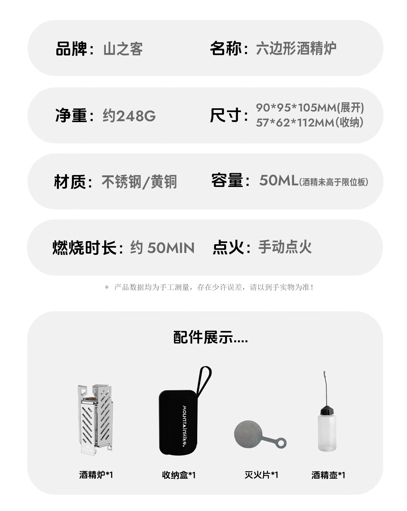山之客新款六边形酒精炉高续航野炊户外露营便携折叠一体式炉架 六边形酒精炉-银色