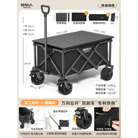 原始人户外露营折叠推车营地车手拉拖车野餐野营拖车遛娃便携买菜小拉车 320L 曜石黑加大-万向越野轮