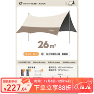 原始人黑胶天幕帐篷户外露营网红野营遮阳棚野餐桌椅防晒超大八角蝶形 26㎡冷钛黑胶款【焦糖咖-2.6米杆】