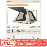 原始人自动充气帐篷户外露营装备全套便携式免搭建遮阳野营防雨过夜防晒 冷钛黑胶奶咖【自动充气】4-6人