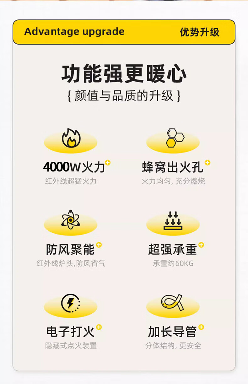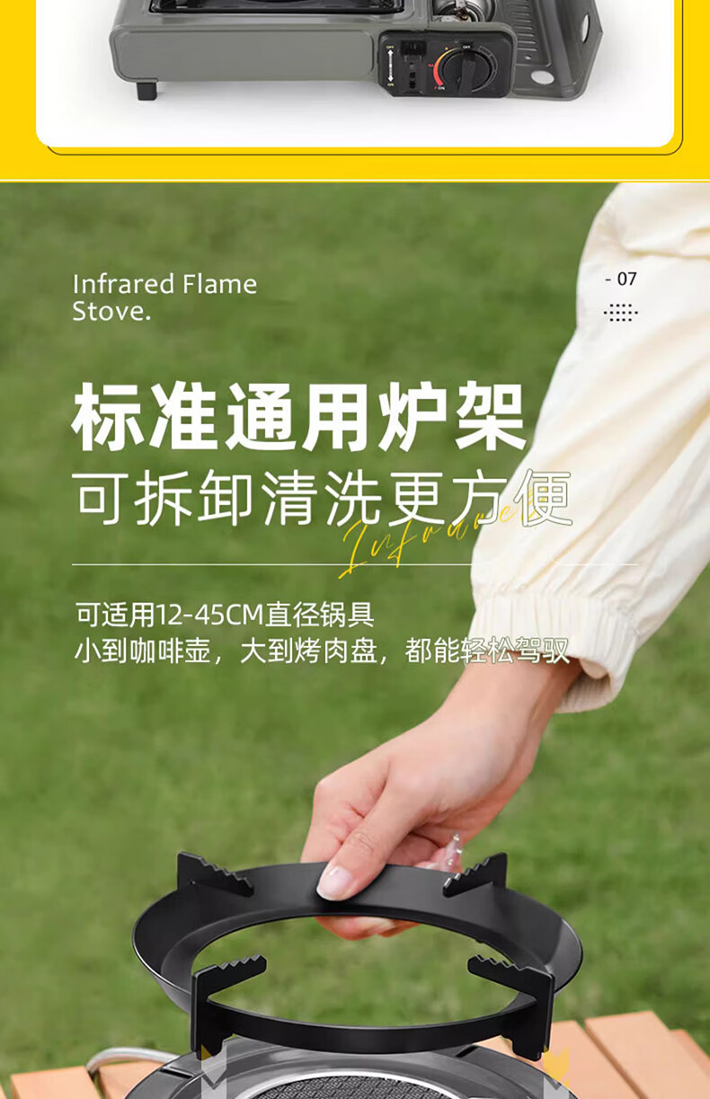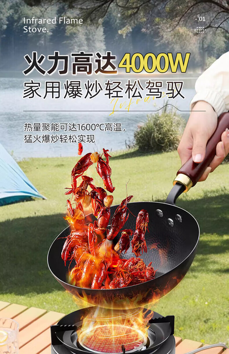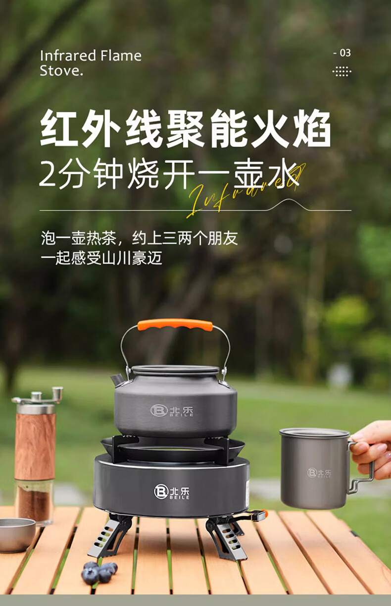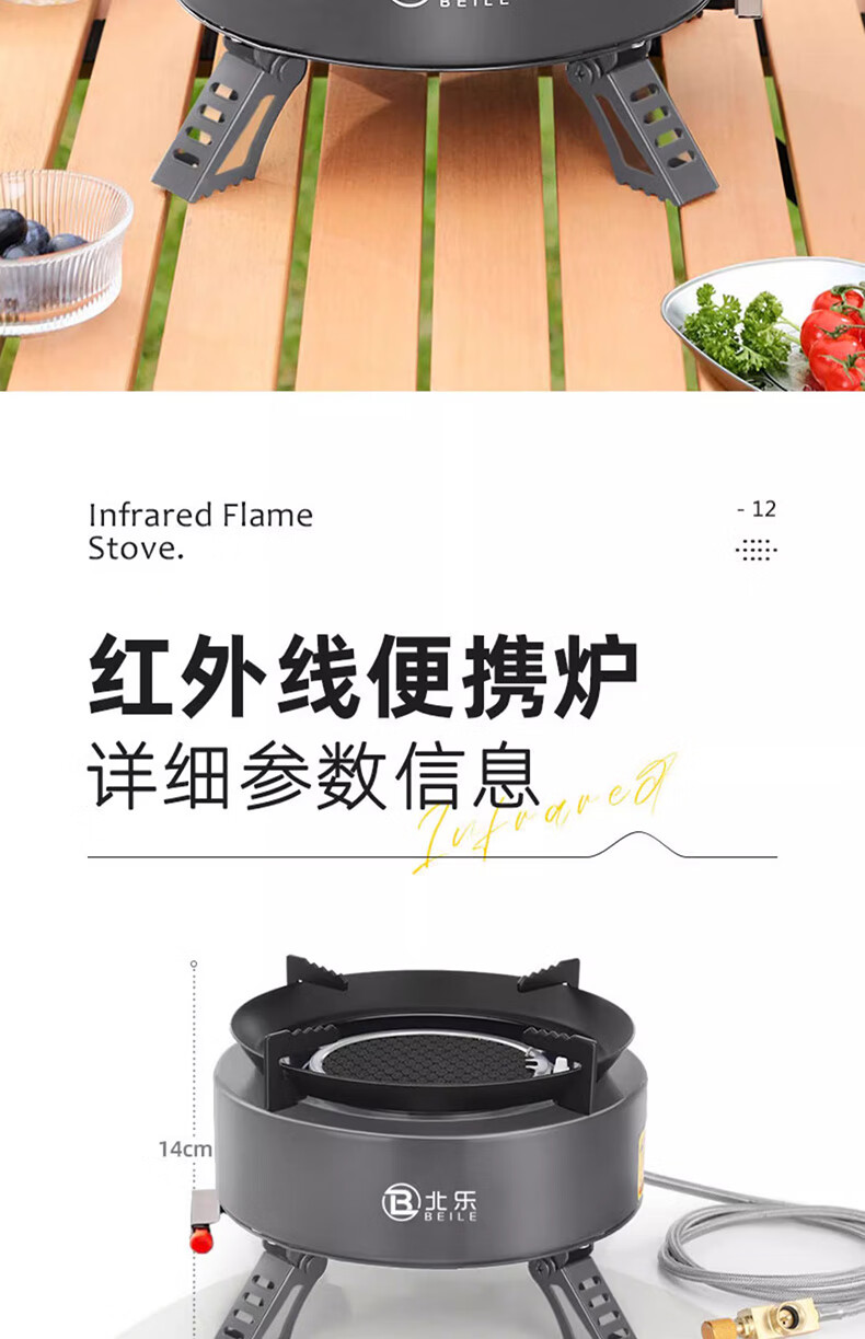 这个红外线野营炉,火力非常大,户外烤肉简直不要太好了,还真的挺方便的,方便清洗,无缝贴合设计,不容易生锈,出去露营也不会担心烧坏桌子,因为这个炉下面是不锈钢,收纳起来也方便,容易折叠,放着车里也不会占很大的位置,也可以用户外那种烧水壶都是可以使用的