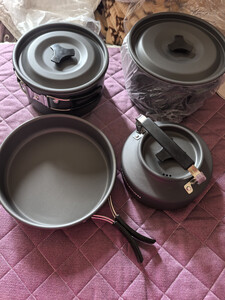 适用场景:户外 产品做工:精致 适用人数:4-6 重量大小:轻便 收纳方便,非常轻松收拾好! 小茶壶够4-6人喝水煮茶。 有两个规格的锅,4人以上可以用大锅,煮面条需要煮两锅就完全够吃 2人用,小锅足够用。