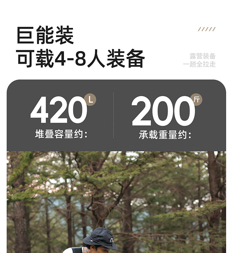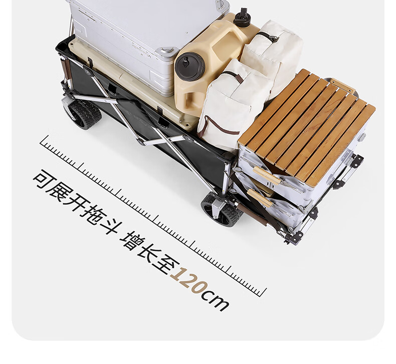 北欢户外露营推车聚拢型营地拖车野营餐拉车F12铝合金 420L 卡其pro尾部扩容-铝合金车架