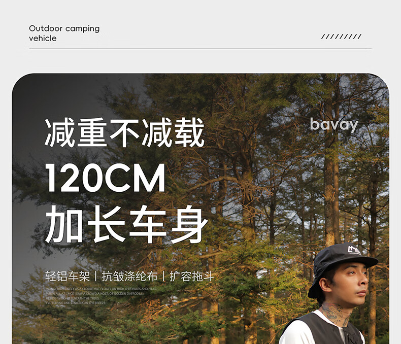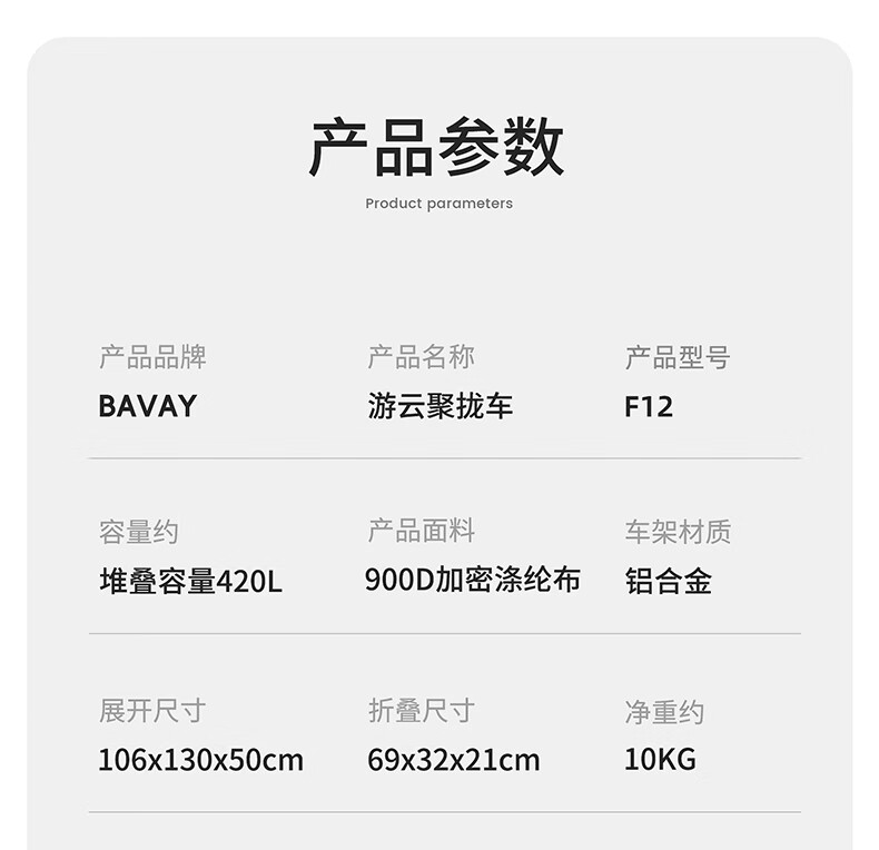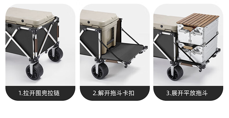 北欢bavay户外露营推车聚拢型营地拖车野营餐拉车F01 300L -遮阳款-经典米-三件套