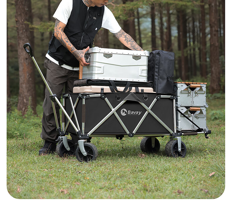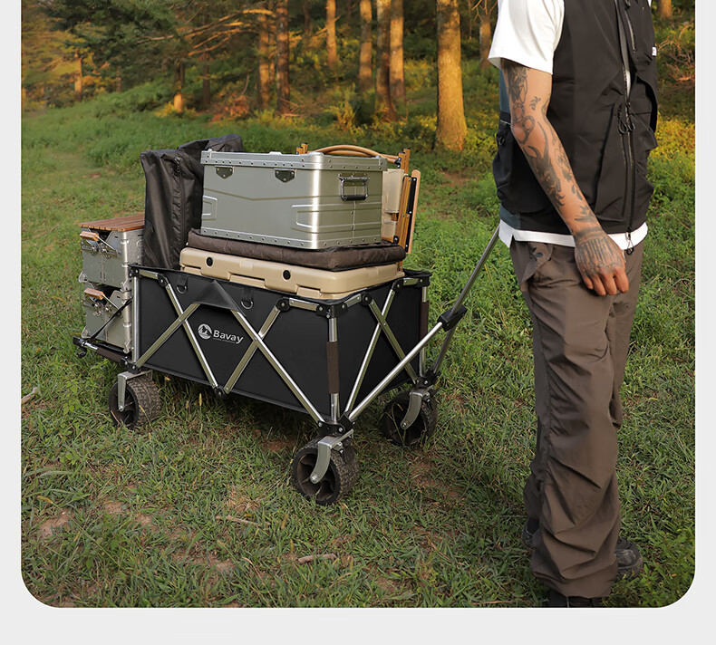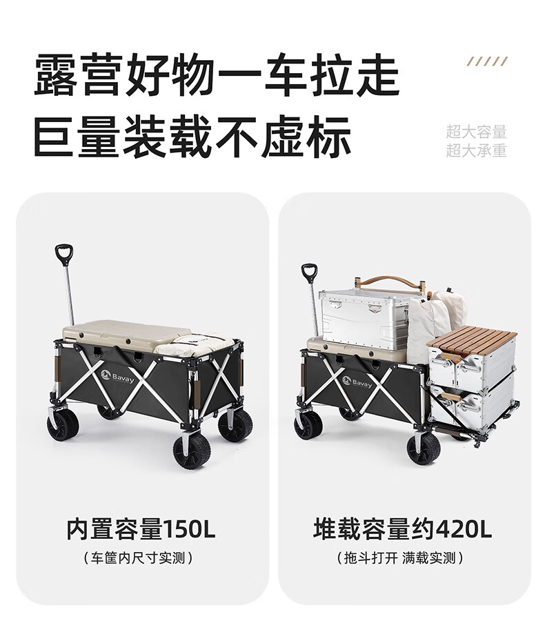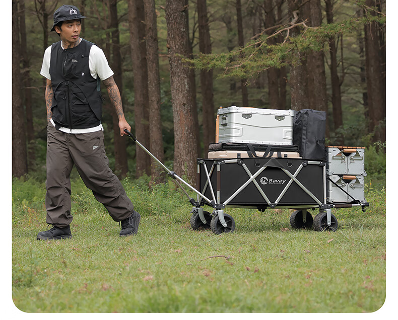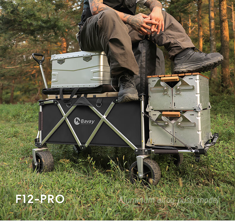 北欢bavay露营推车折叠小推车户外营地野餐拉货车F12 300L 卡其-铝合金车架+遮阳顶棚