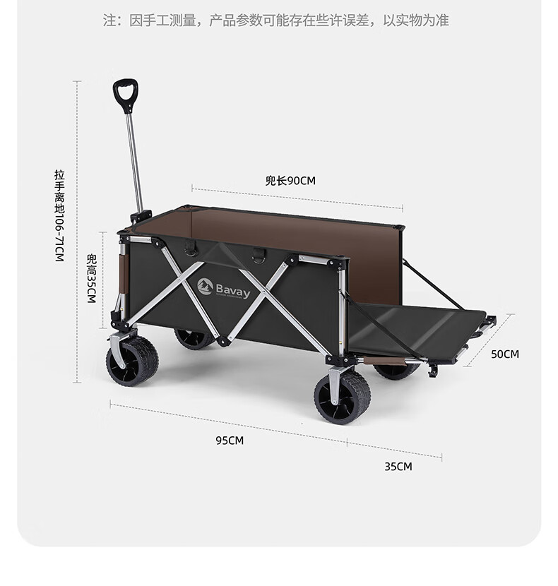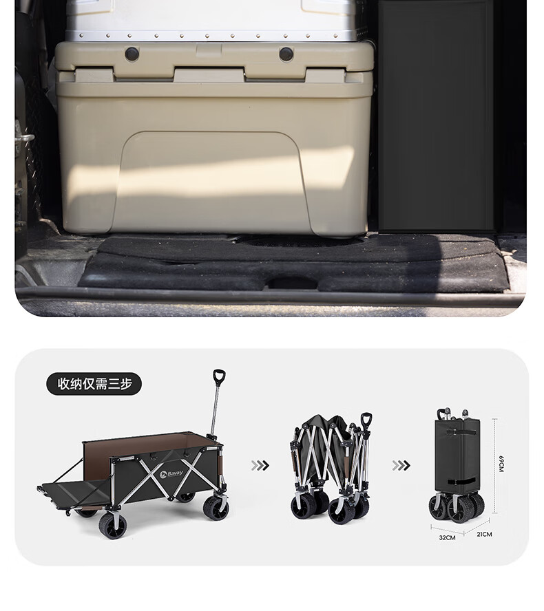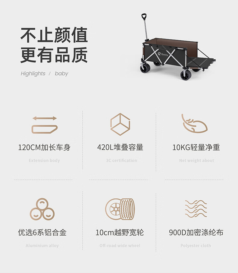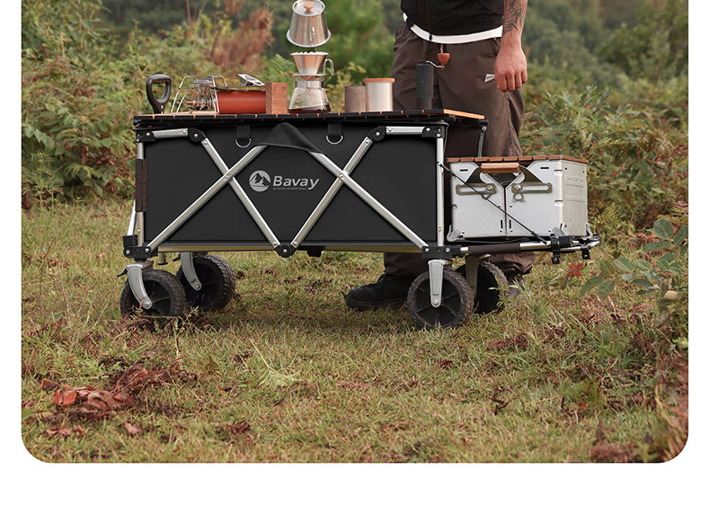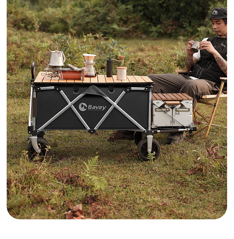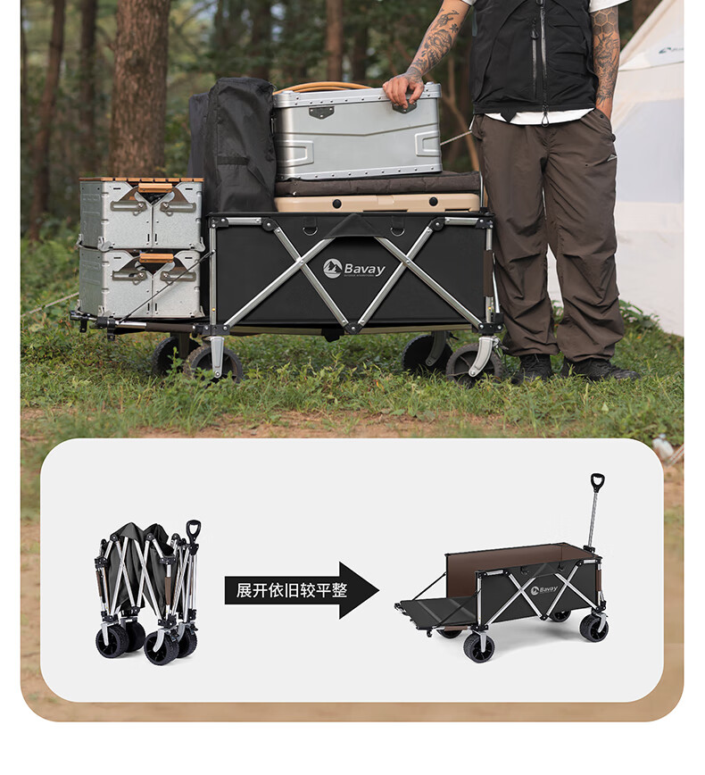 北欢bavay露营车带桌板手推车折叠野餐铝合金小拖车S14 560L 棕色-铝合金MAX-加强扩容款