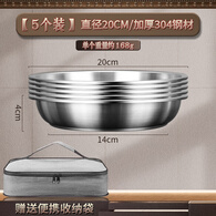 岛奇(Daoqi)304食品级不锈钢圆盘浅菜盘碟蒸盘菜碟平底户外露营餐具便携 【5个装】直径20CM(送收纳袋)