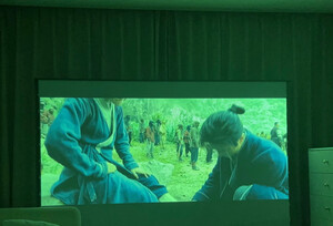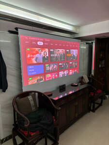 幕布很不错,带有联动功能,100寸的距离3米左右正合适,白天光线强也受影响不大,夜晚看更有感觉😁,清晰度也很好,终于可以在家看大片了!