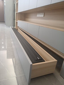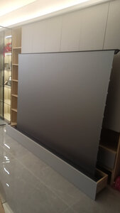 和我的提前定制的长抽屉很搭!提前找客服要了尺寸,618入手,非常棒。家里空间小做这种隐藏式的抽屉太赞了。投影明天才到,希望可以完美搭配。