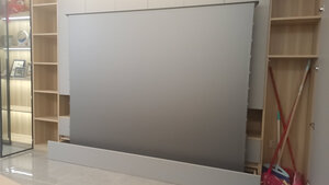 屏幕够大上档次,投影效果清晰明亮,屏幕上升过程中,后面的支撑架平稳有力道,屏幕上升过程中屏幕可能有点皱纹感,等完全上升自动校正后屏幕还是很平整的,屏幕够大上档次,投影效果清晰明亮,配上好的投影仪观影绝对奈斯。