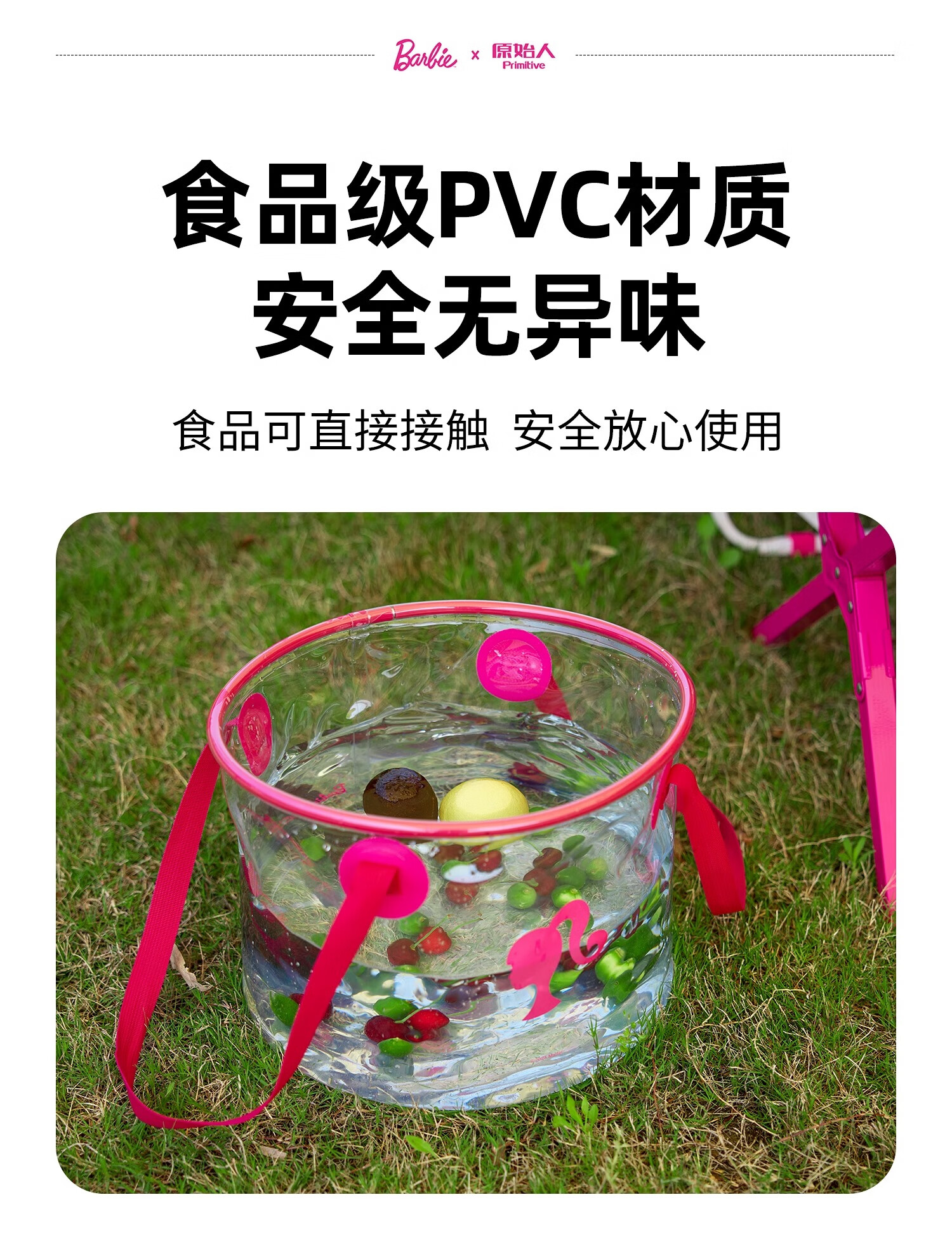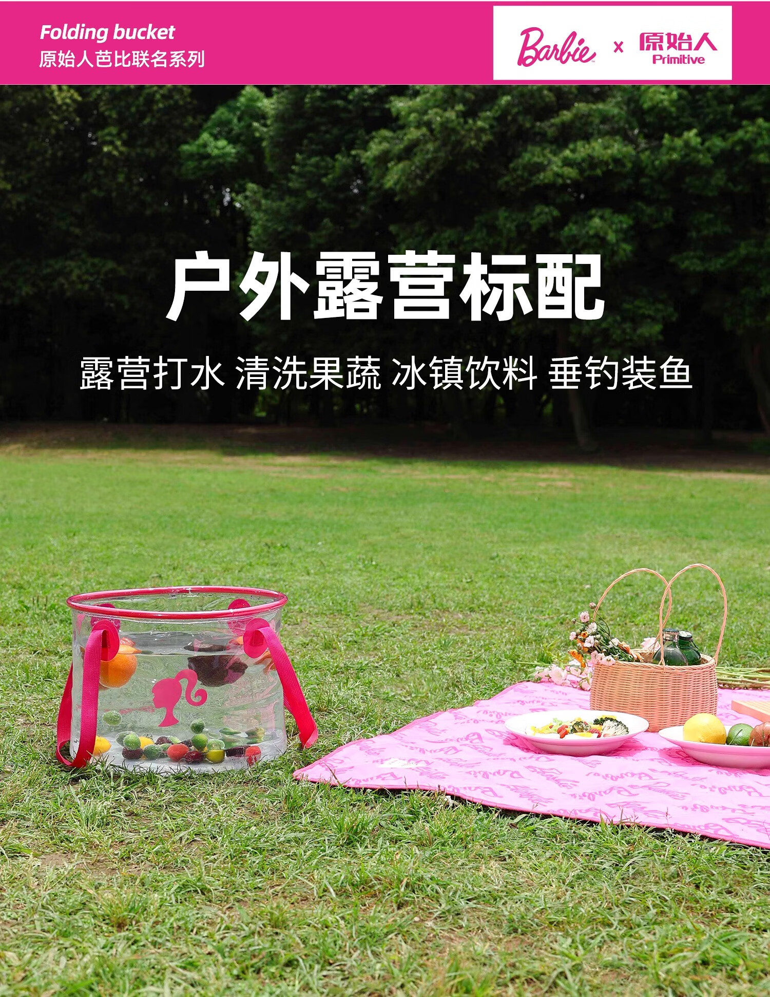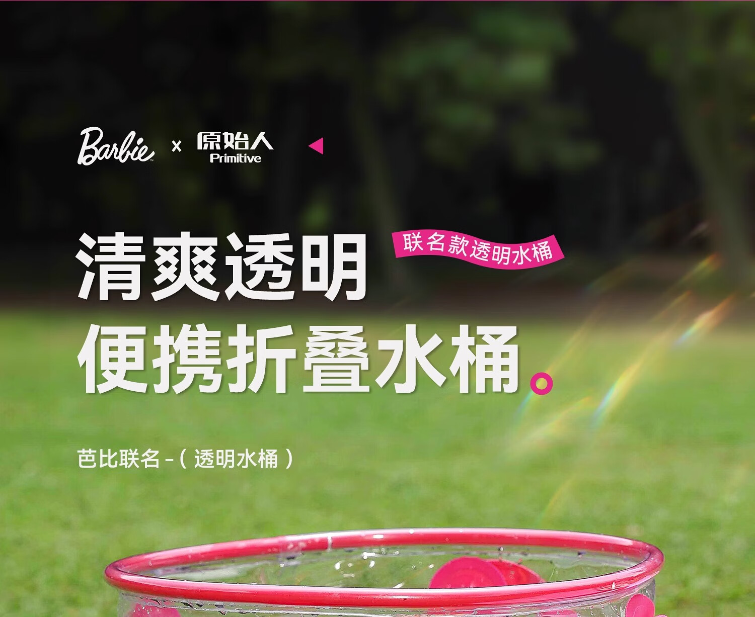 原始人芭比户外折叠纯净饮用水桶矿泉水家用车载储水桶大容量空桶 20L透明可视【芭比粉联名款】