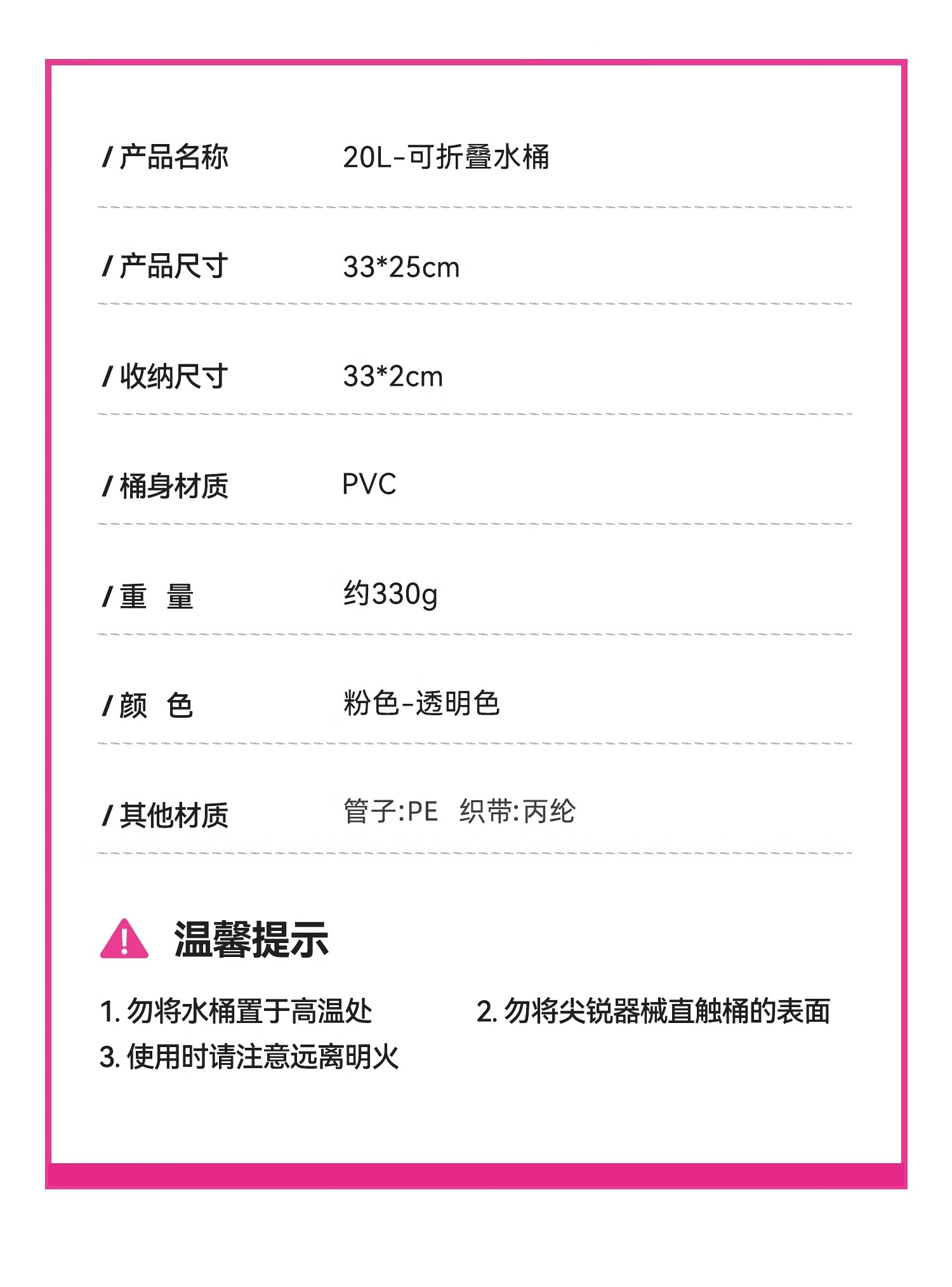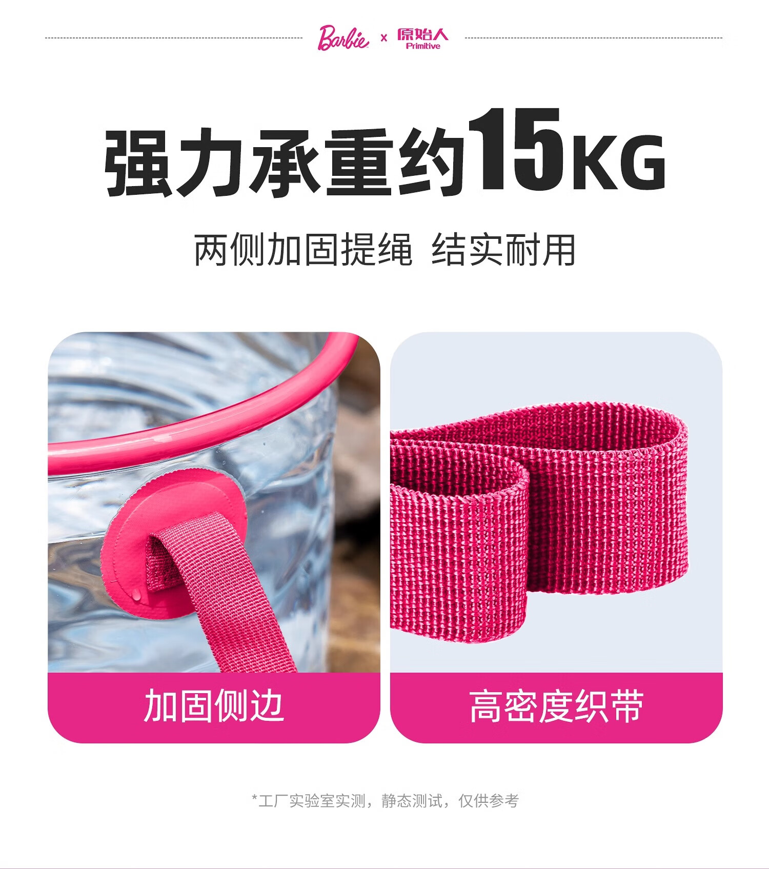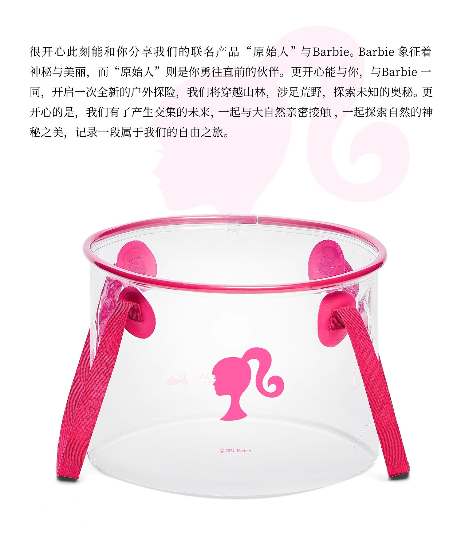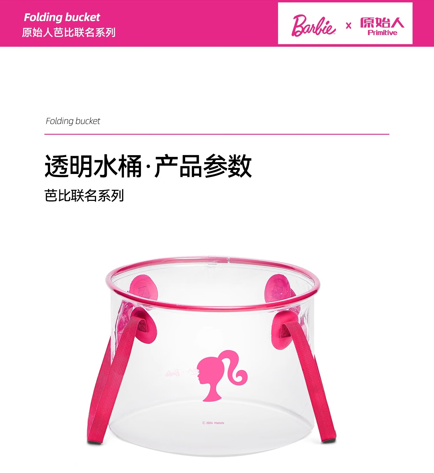 原始人芭比户外折叠纯净饮用水桶矿泉水家用车载储水桶大容量空桶 20L透明可视【芭比粉联名款】