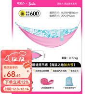 原始人吊床户外露营加厚防侧翻成人降落伞布双人秋千室内露营夏季便携 芭比联名海滨之地-赠绑带+登山扣