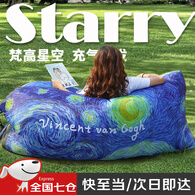 爱拉屋优充气沙发音乐节户外便携懒人空气沙发露营双人躺椅野营气垫床坐垫 蓝色 加长加厚牛津布【含收纳袋】