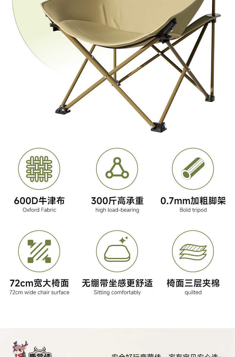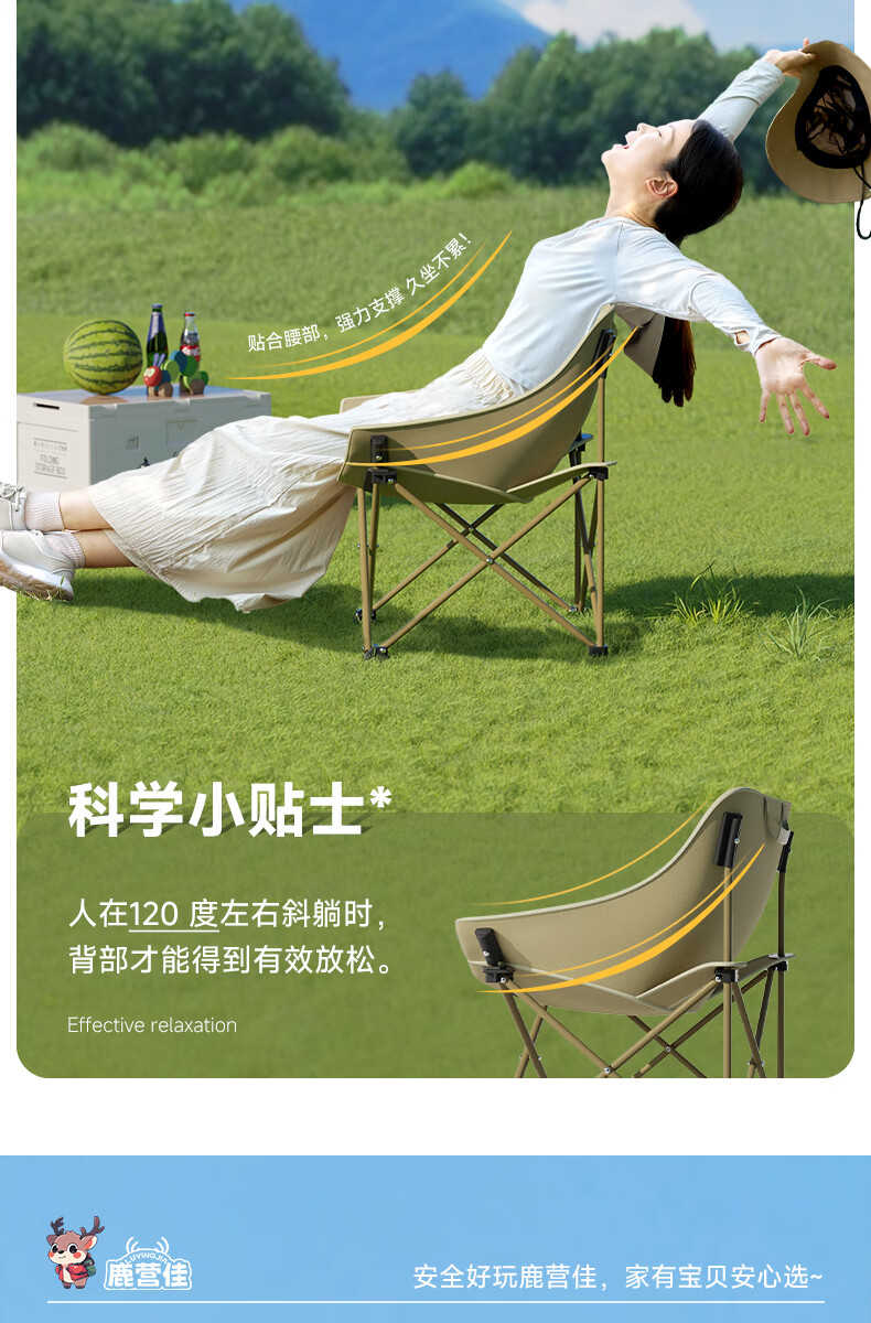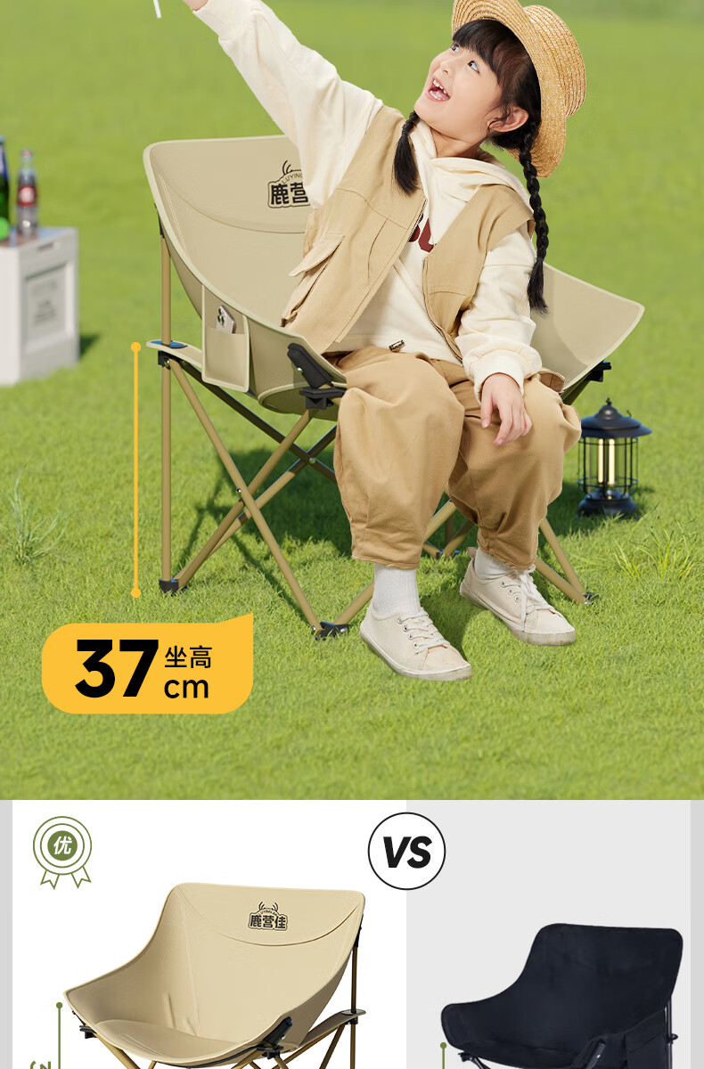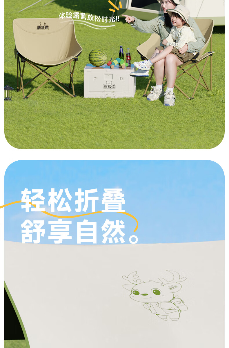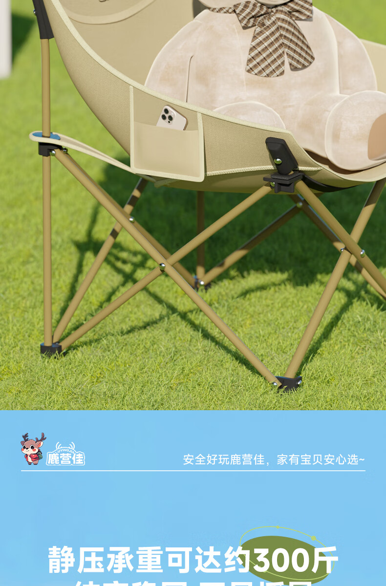 鹿营佳揽月Pro月亮椅亲子户外露营折叠椅加粗加厚承重加宽椅面户外椅子 升级款揽月PRO月亮椅