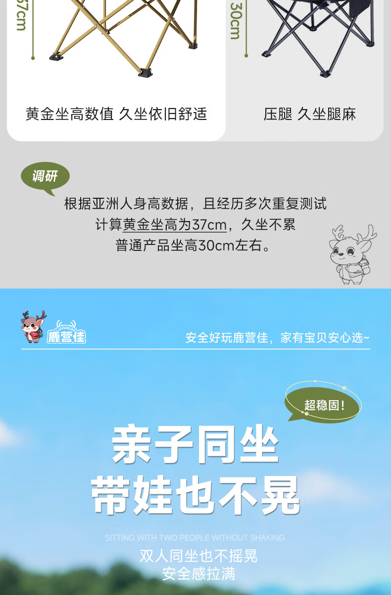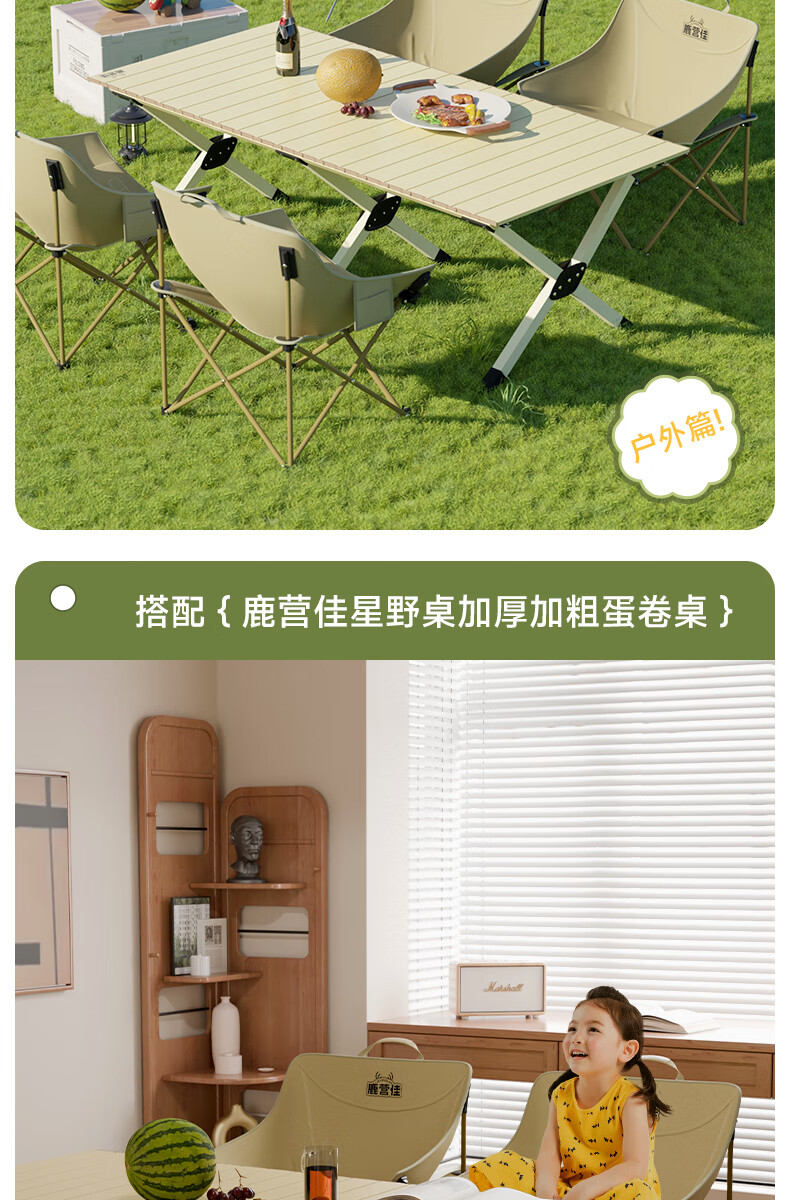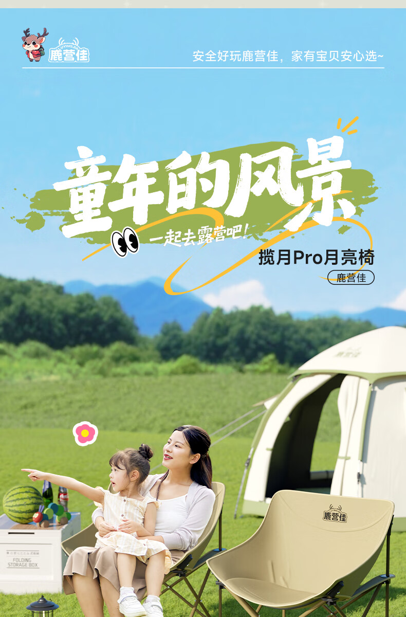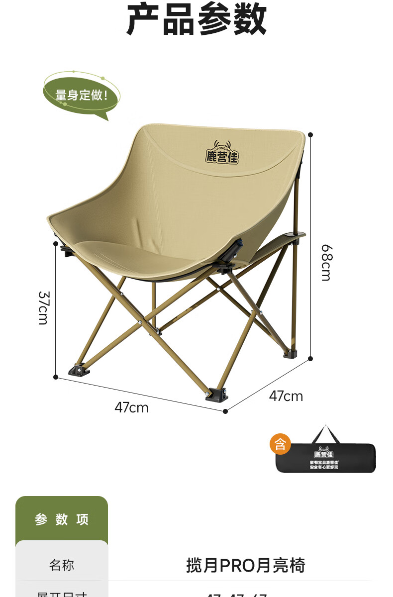 鹿营佳揽月Pro月亮椅亲子户外露营折叠椅加粗加厚承重加宽椅面户外椅子 升级款揽月PRO月亮椅