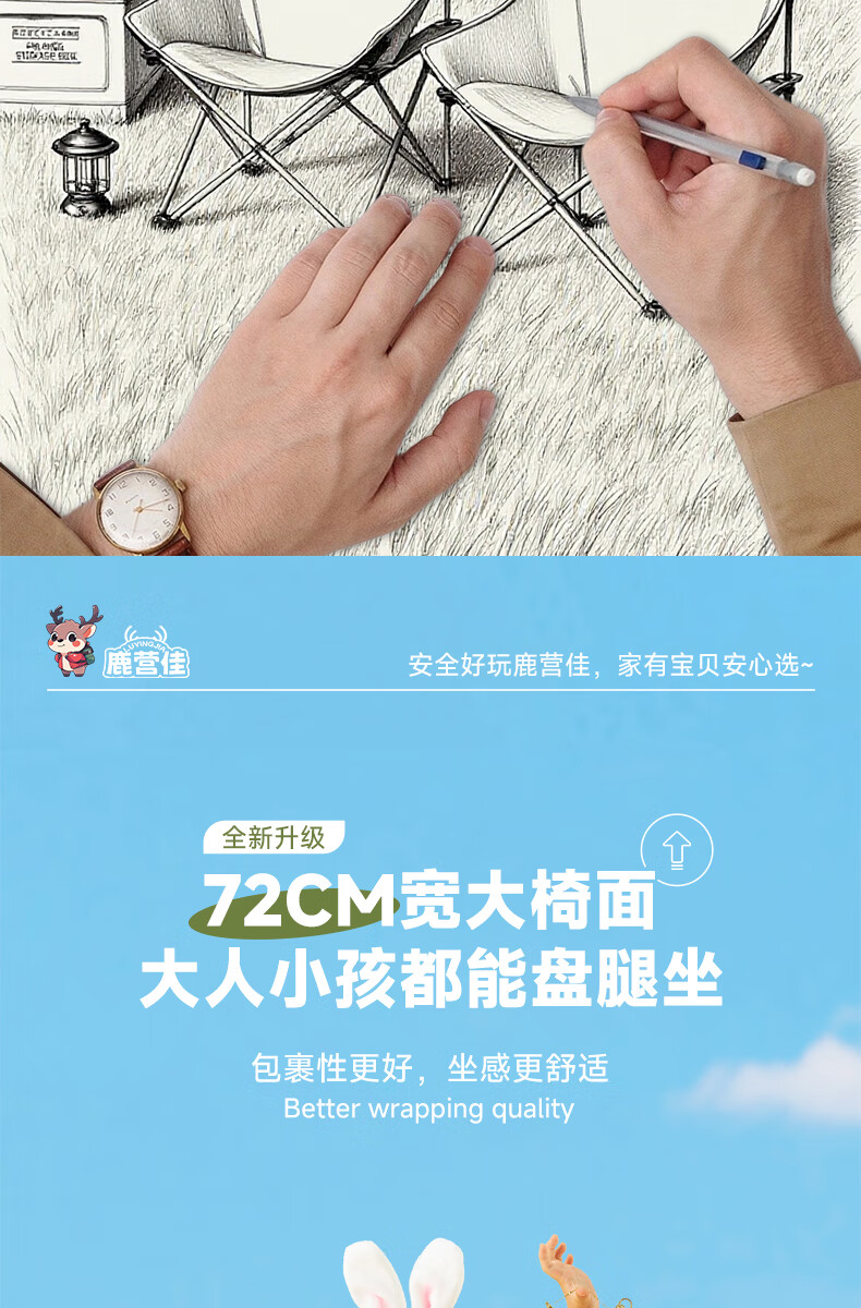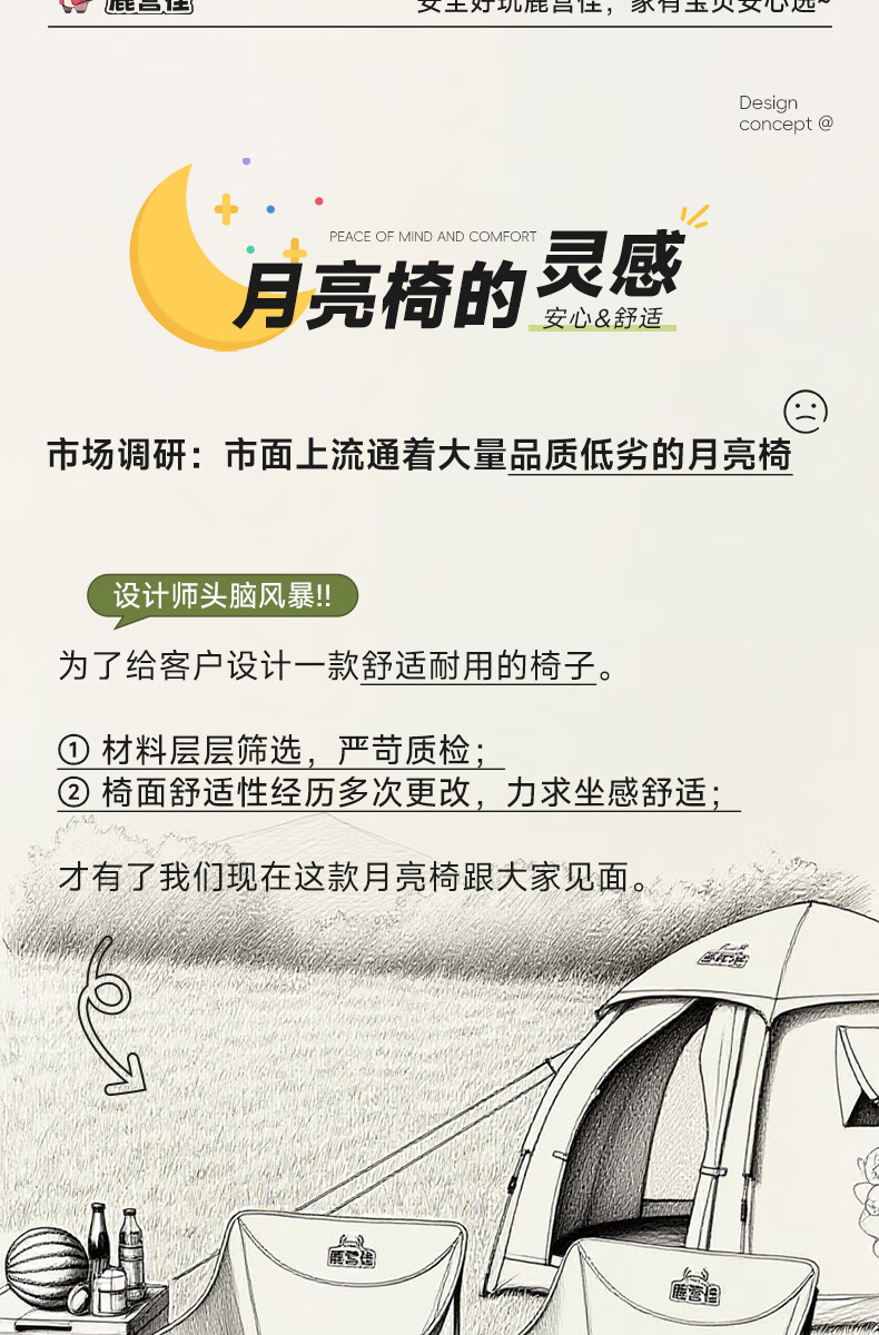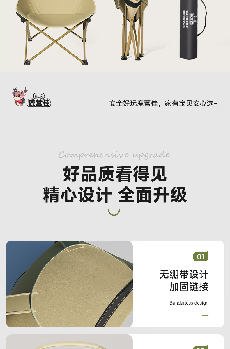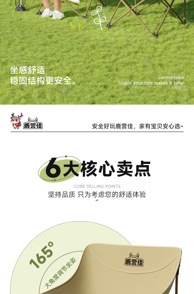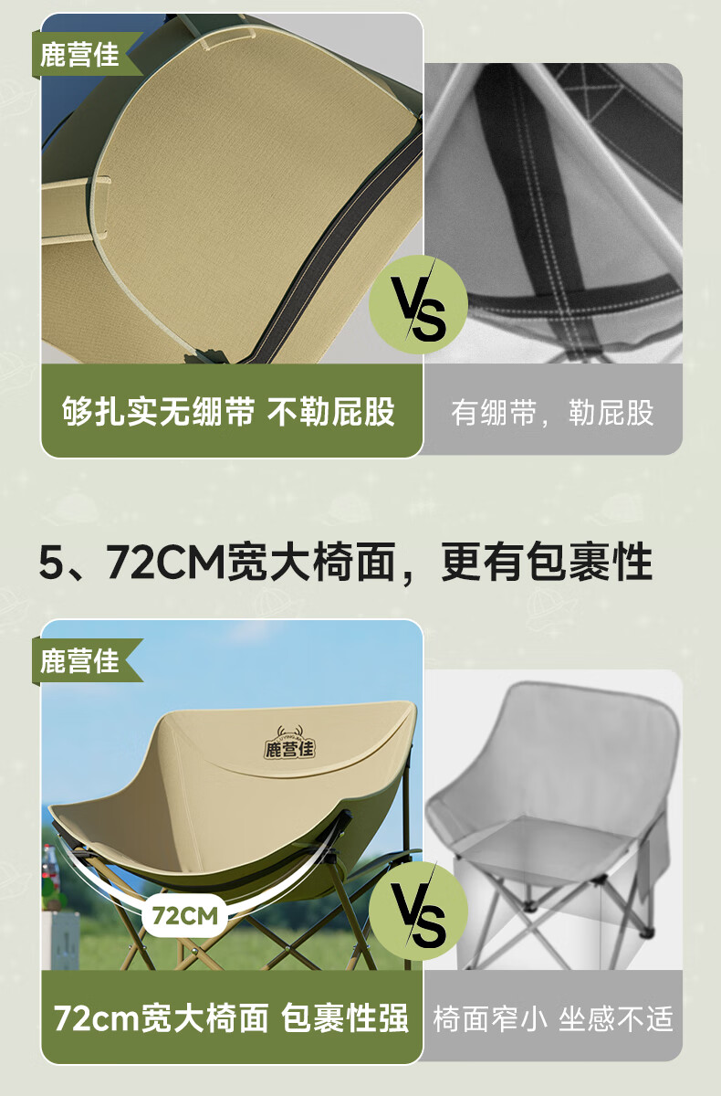 鹿营佳揽月Pro月亮椅亲子户外露营折叠椅加粗加厚承重加宽椅面户外椅子 升级款揽月PRO月亮椅