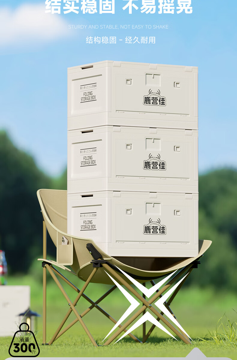 鹿营佳露营车户外折叠推车营地车可收纳拉车野餐车大容量野营拖车 黑色 150L 无刹车 后排可放倒