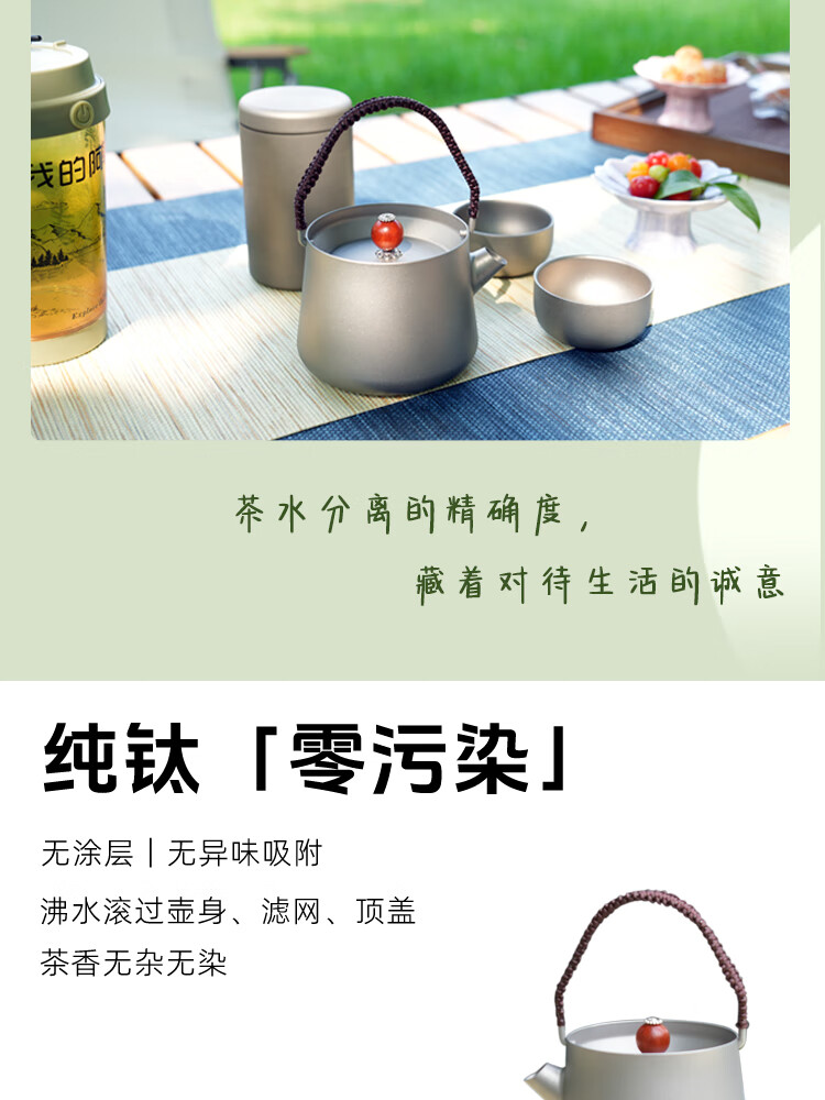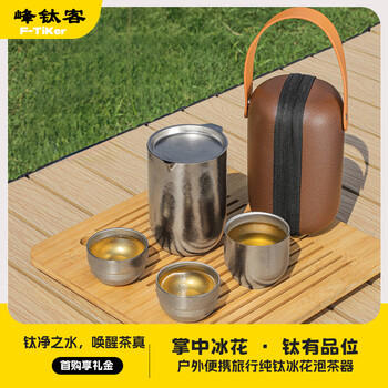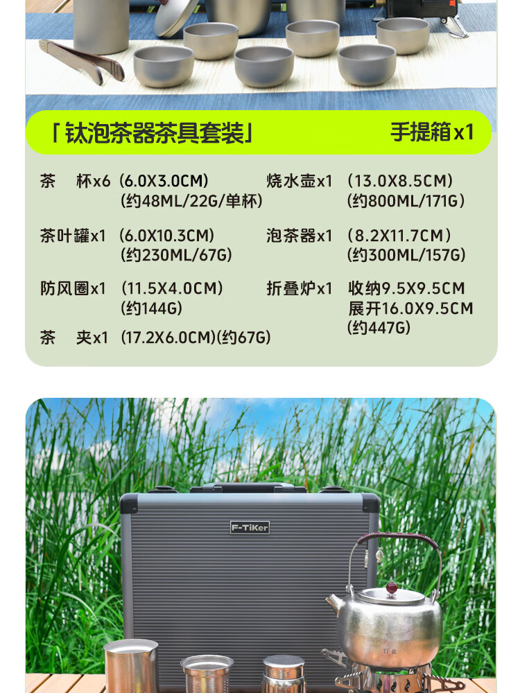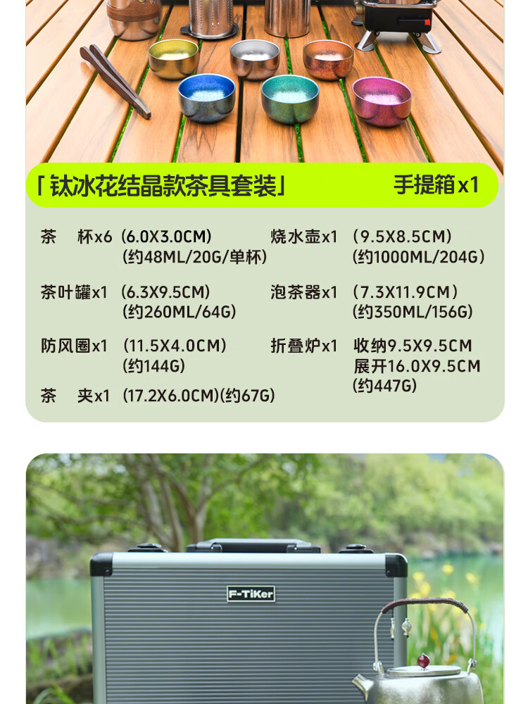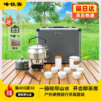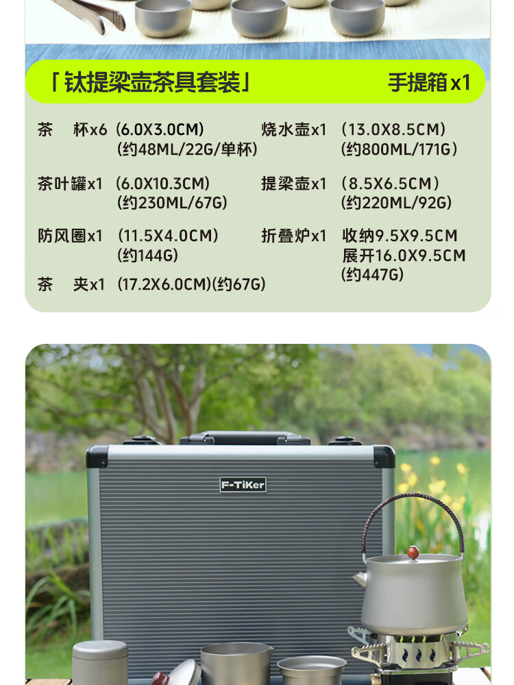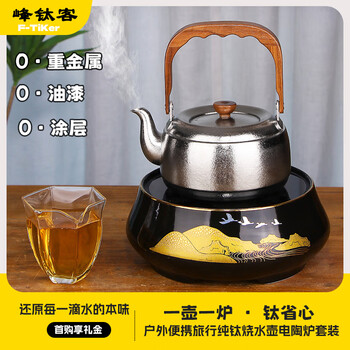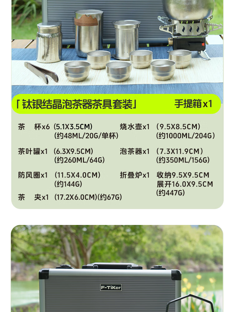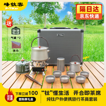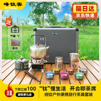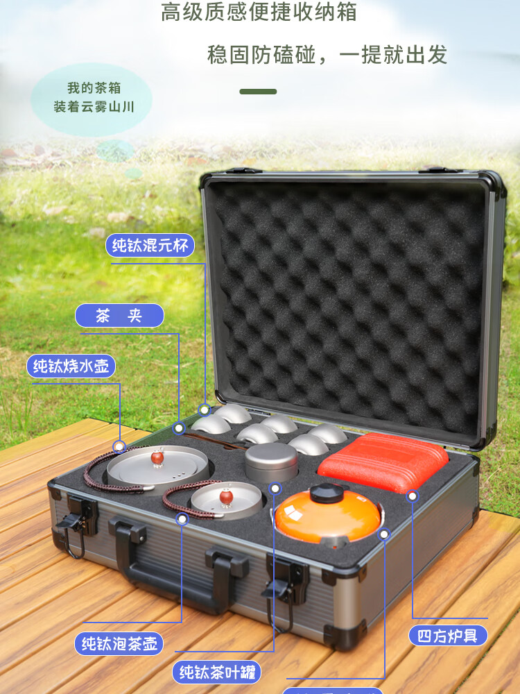 户外煮茶烧水一体纯钛户外茶具炉具锅具烧水壶便携式露营装备全套 升级款手提箱14件套【钛银结晶泡茶器】