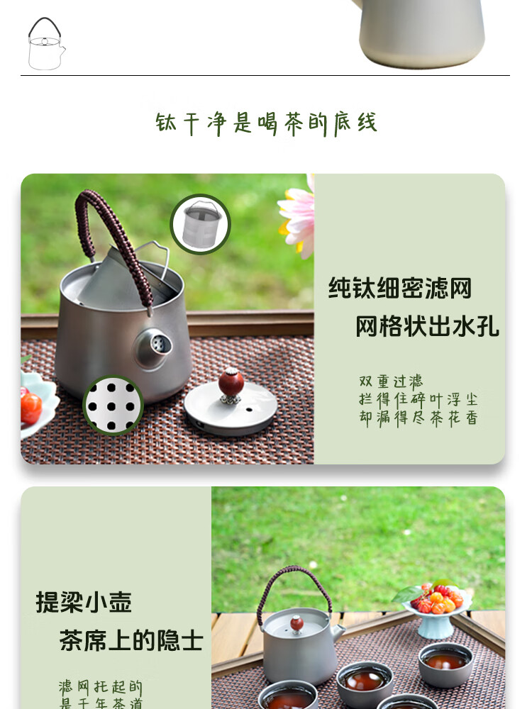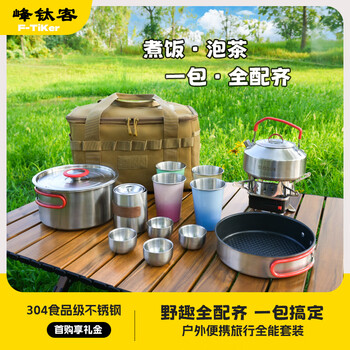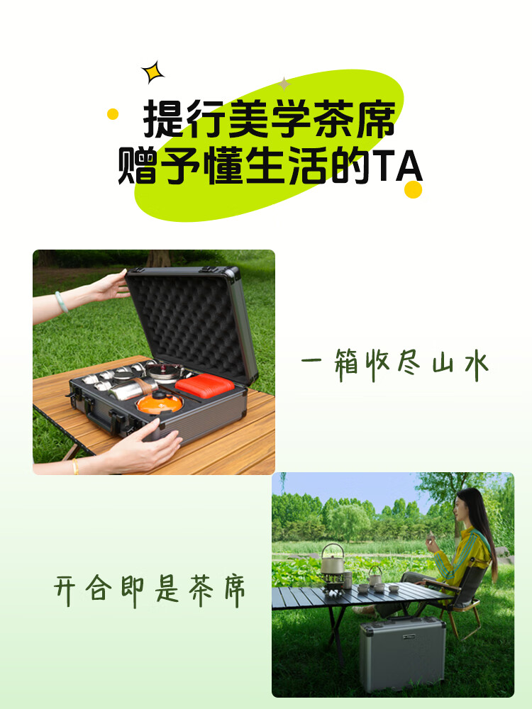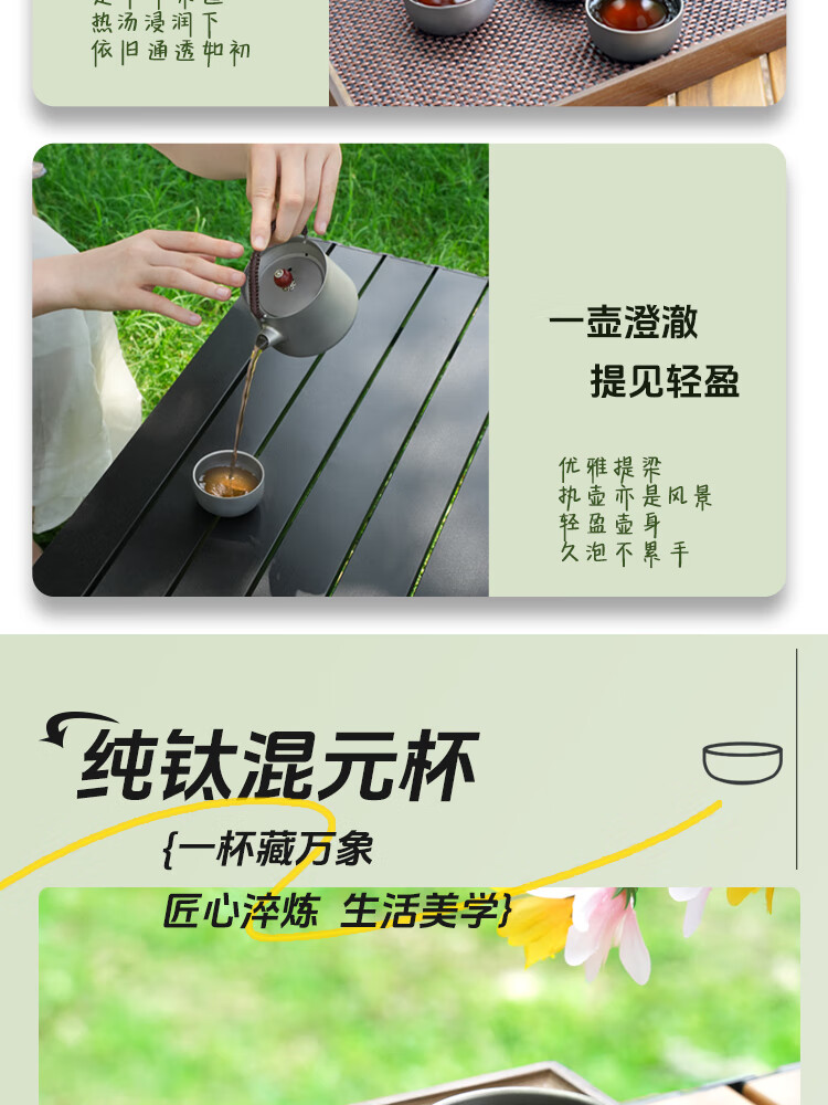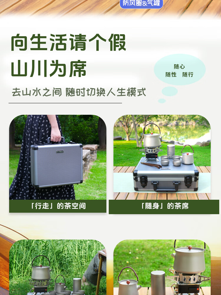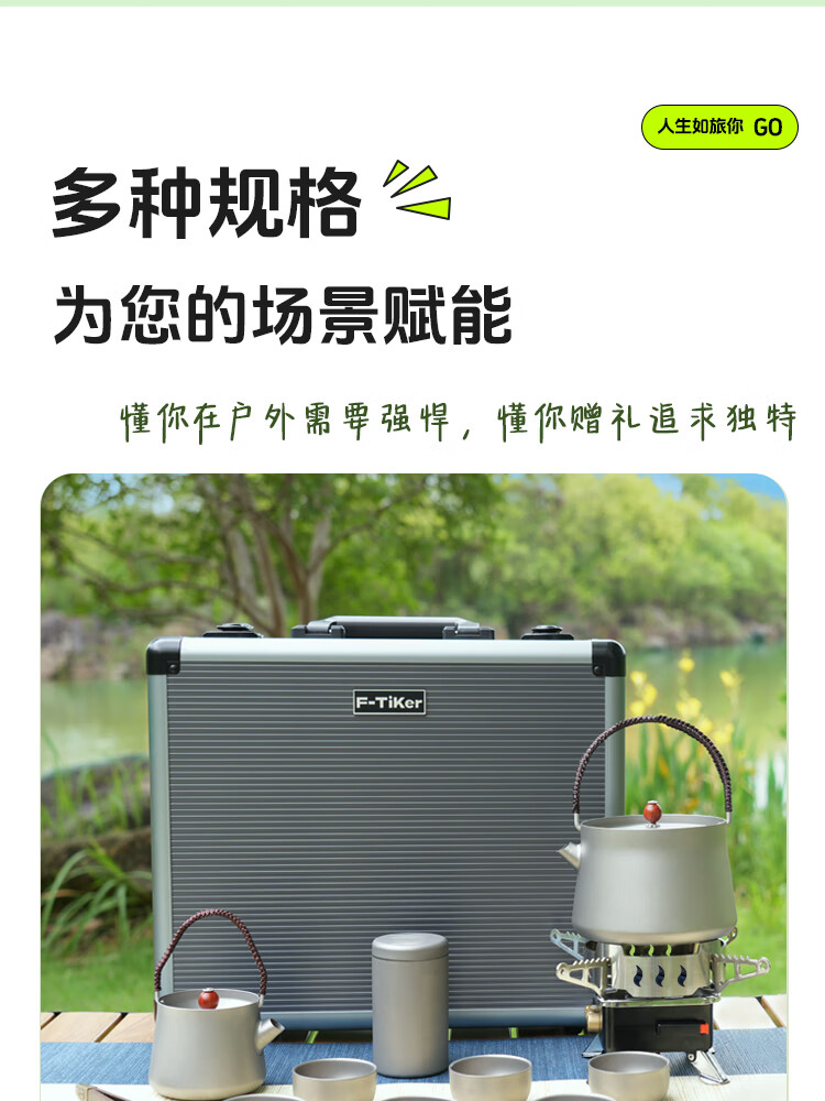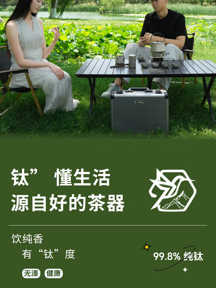 户外煮茶烧水一体纯钛户外茶具炉具锅具烧水壶便携式露营装备全套 升级款手提箱14件套【钛银结晶泡茶器】