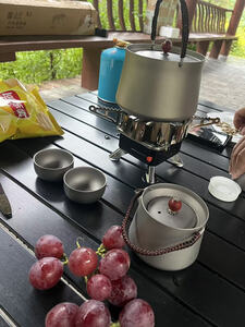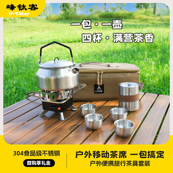 探险者(TAN XIAN ZHE)户外桌椅围炉煮茶套装露营椅月亮椅便携蛋卷桌折叠桌露营装备全套 【玻璃壶+玻璃杯_6】围炉一桌四椅全套