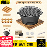 探险者围炉煮茶烧烤炉家用户外铸铁烤炉烧烤室内取暖炉烧烤火盆炉木炭 28CM铸铁炉+铸铁水壶+杯+5斤炭