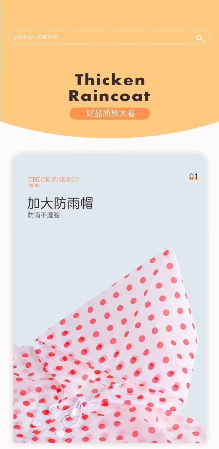 这一次性加厚雨衣很棒。加厚的材质很结实,防水性好,下雨天能很好地遮雨,用完即扔,很方便。
