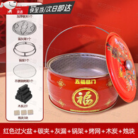 新居搬家火盆乔迁入宅仪式红色过火盆新屋新房新居之喜烧烤取暖炉 福字火盆+烤网+碳夹+灰漏+锅架+木炭+引火块