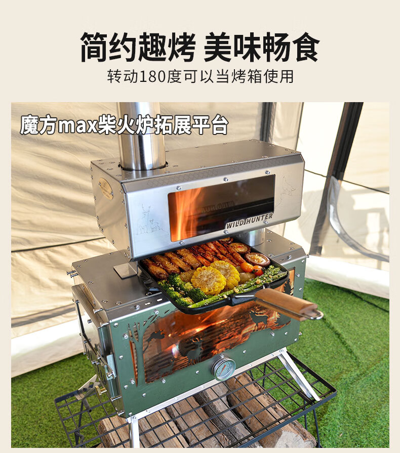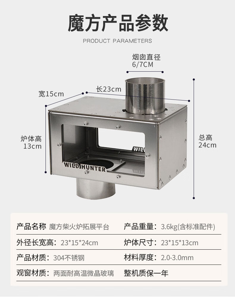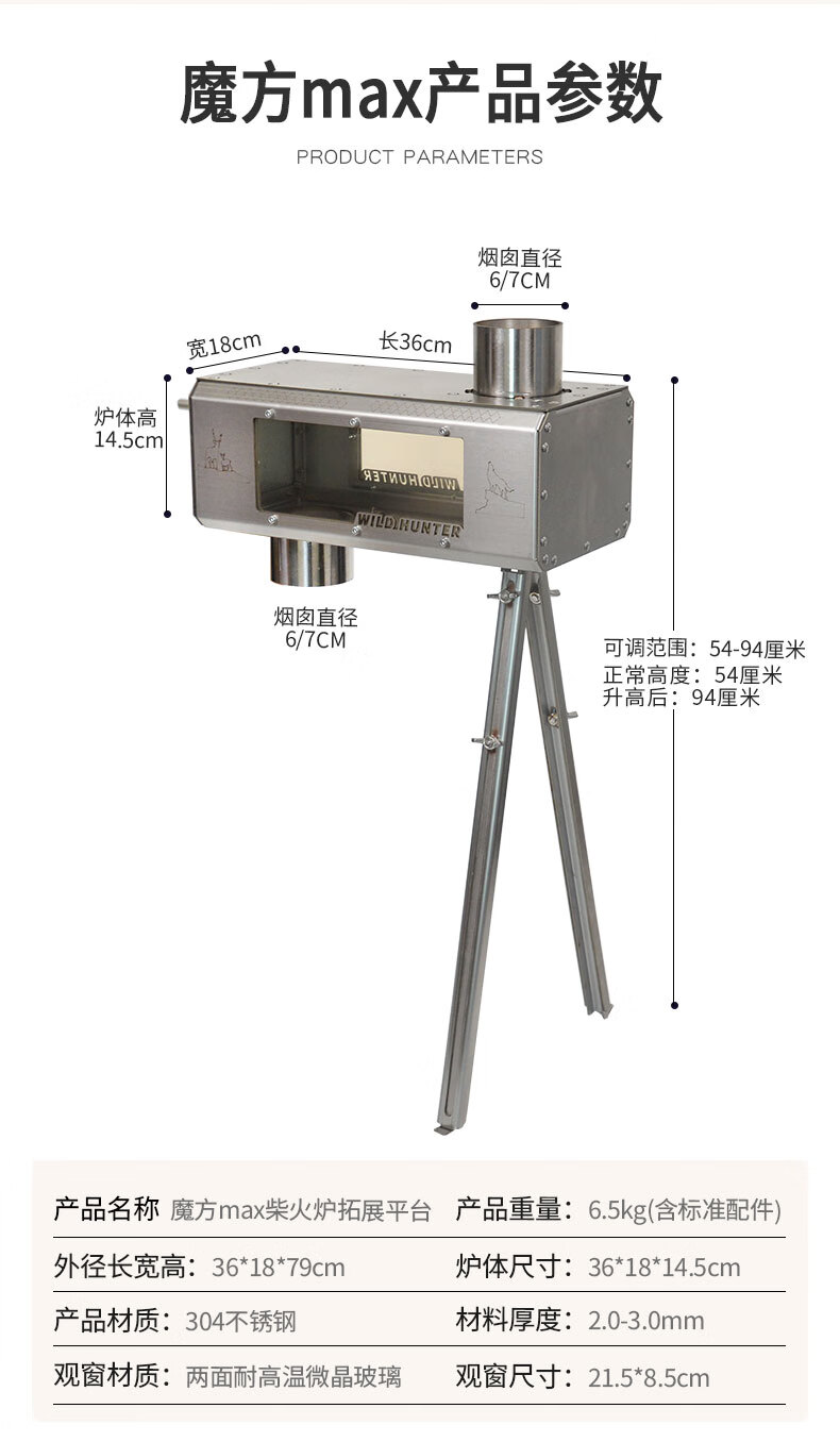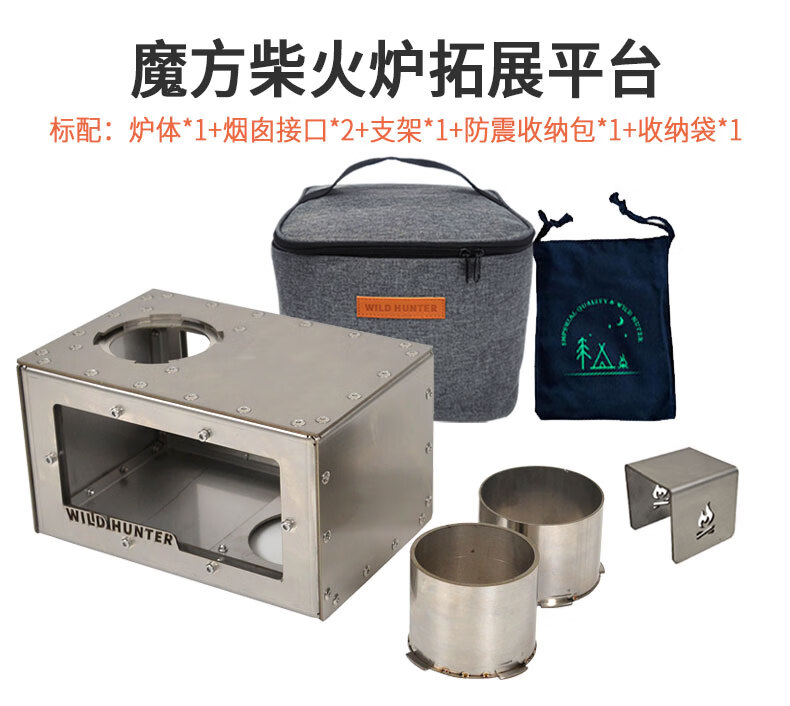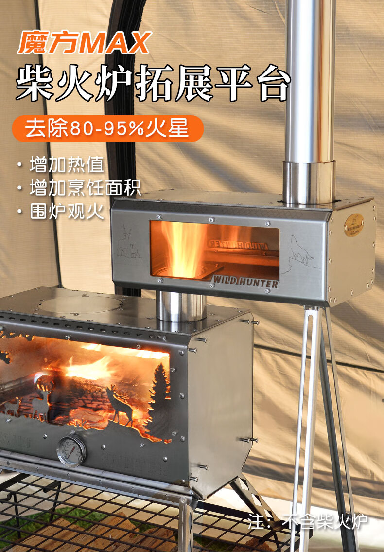 荒野猎人柴火炉魔方防火星烹饪2面观火烟囱转接增热304钢拓展平台 魔方8CM接口适用倒插式8厘米烟囱