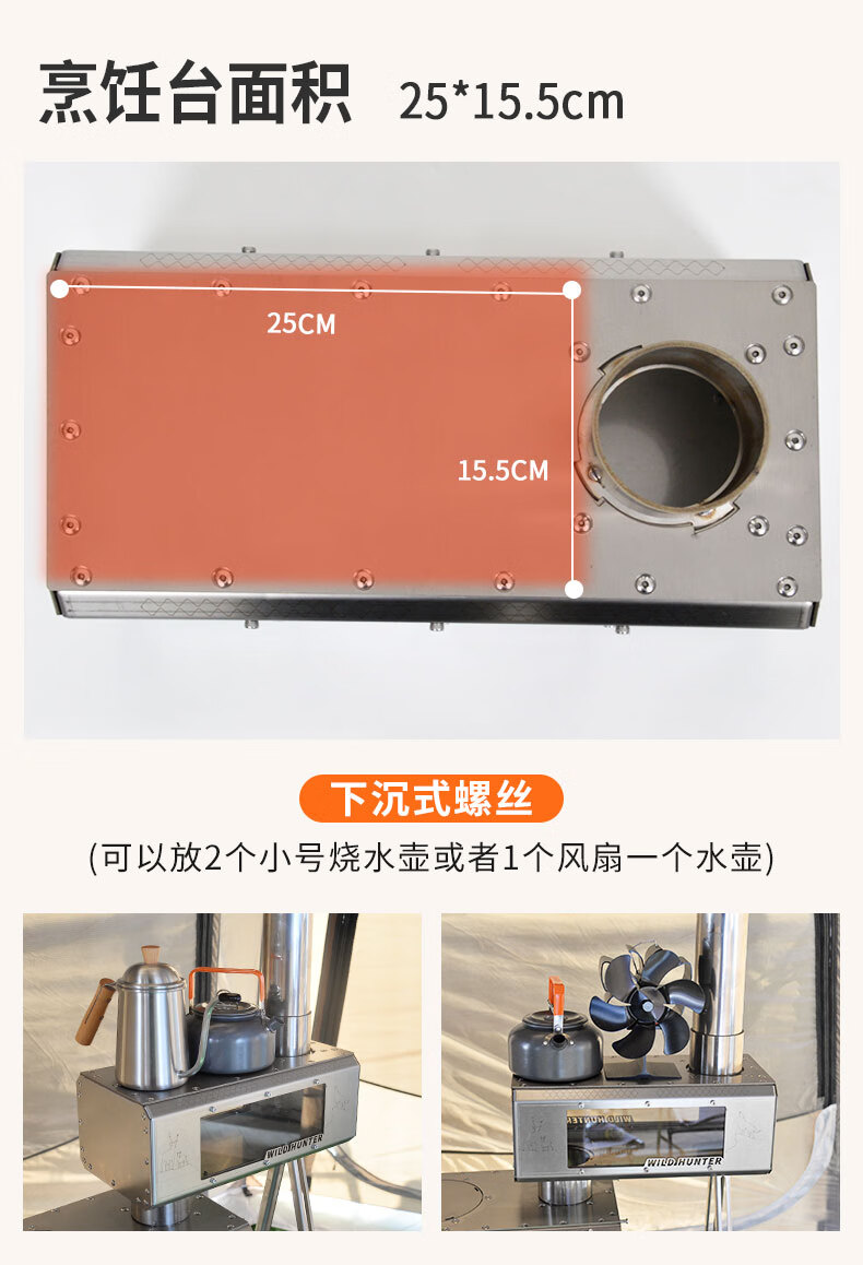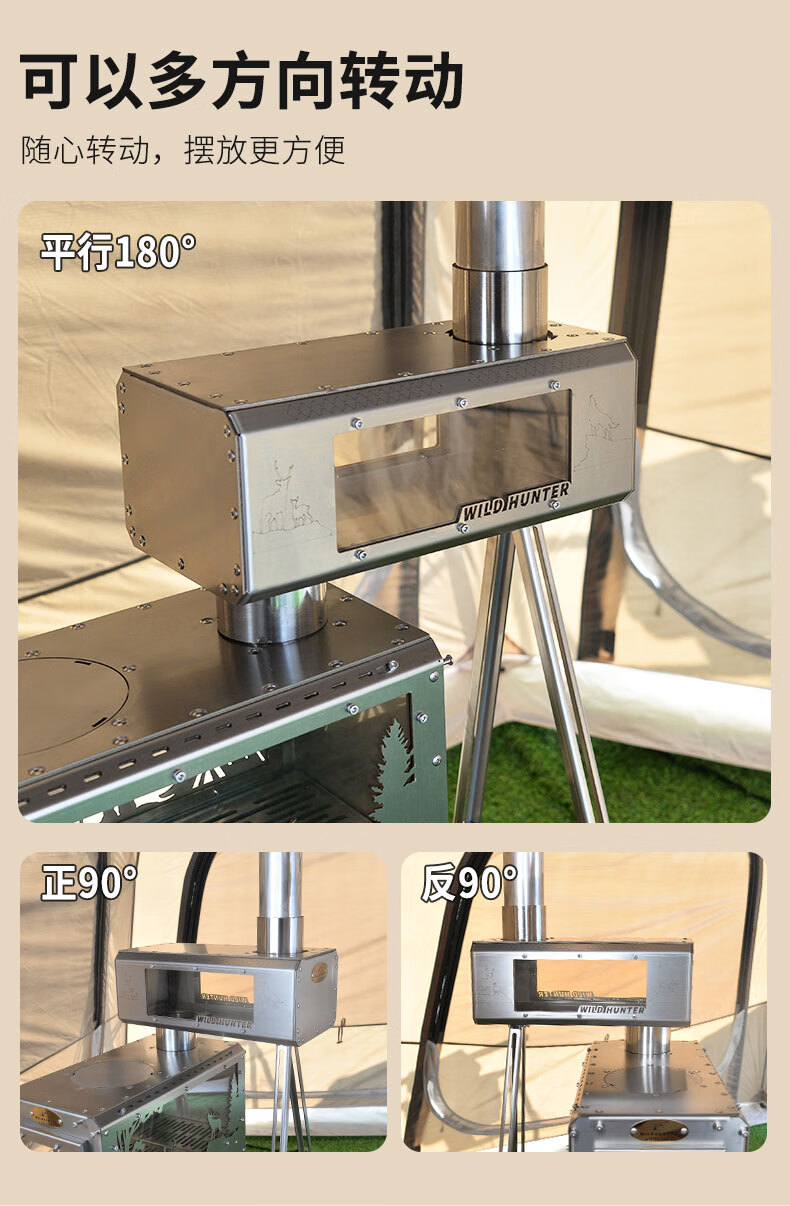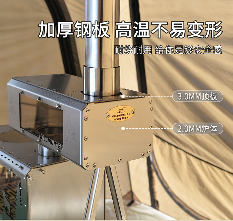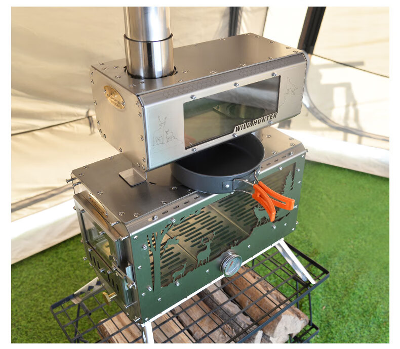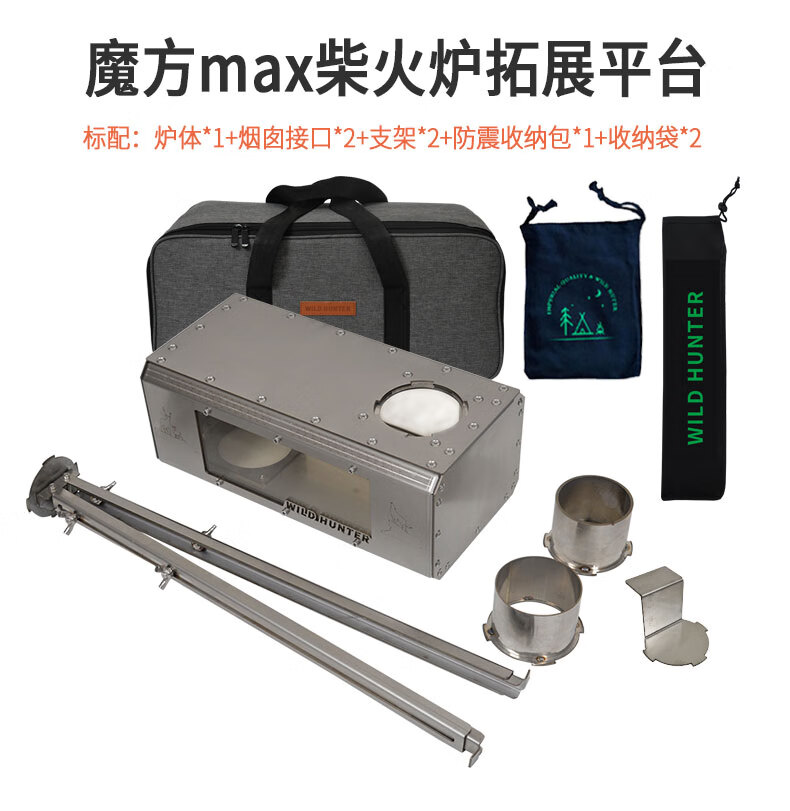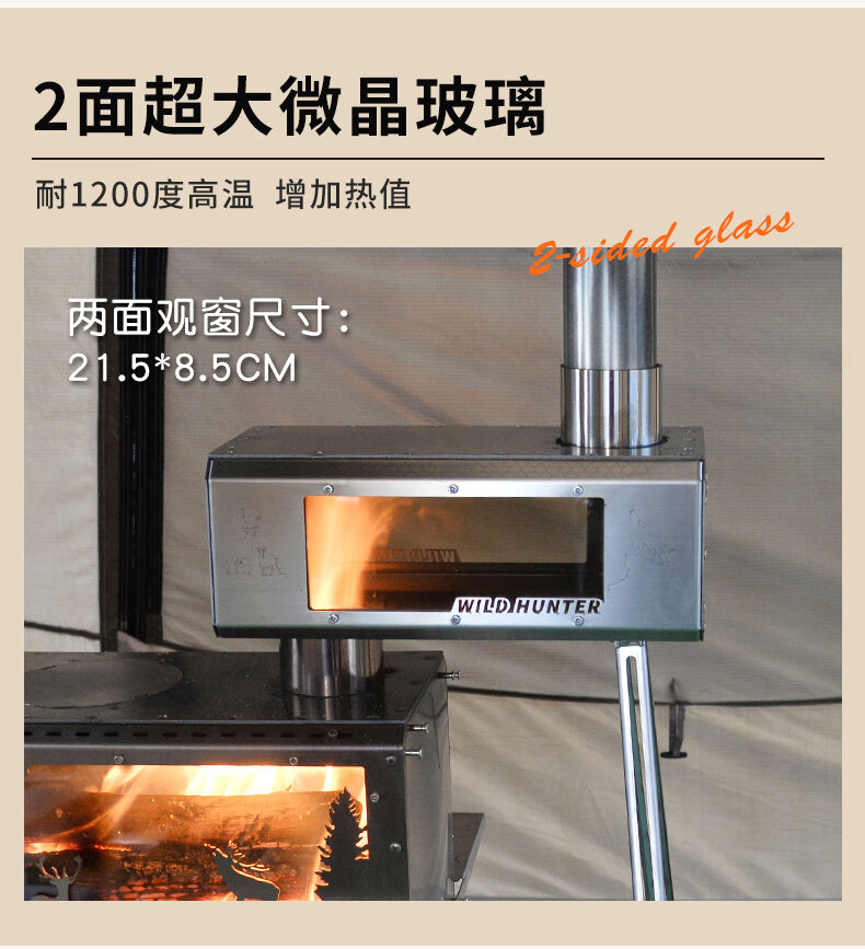 荒野猎人柴火炉魔方防火星烹饪2面观火烟囱转接增热304钢拓展平台 魔方8CM接口适用倒插式8厘米烟囱