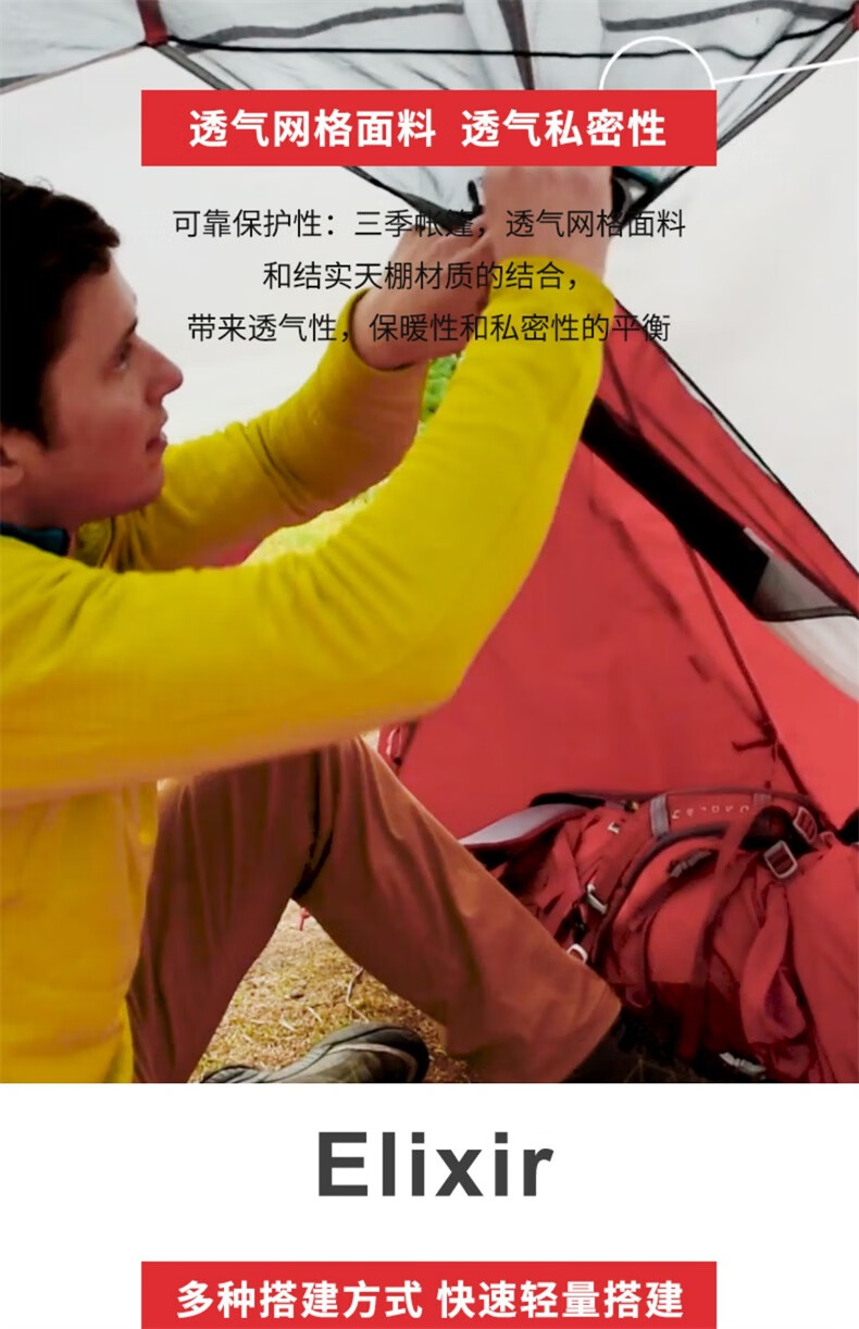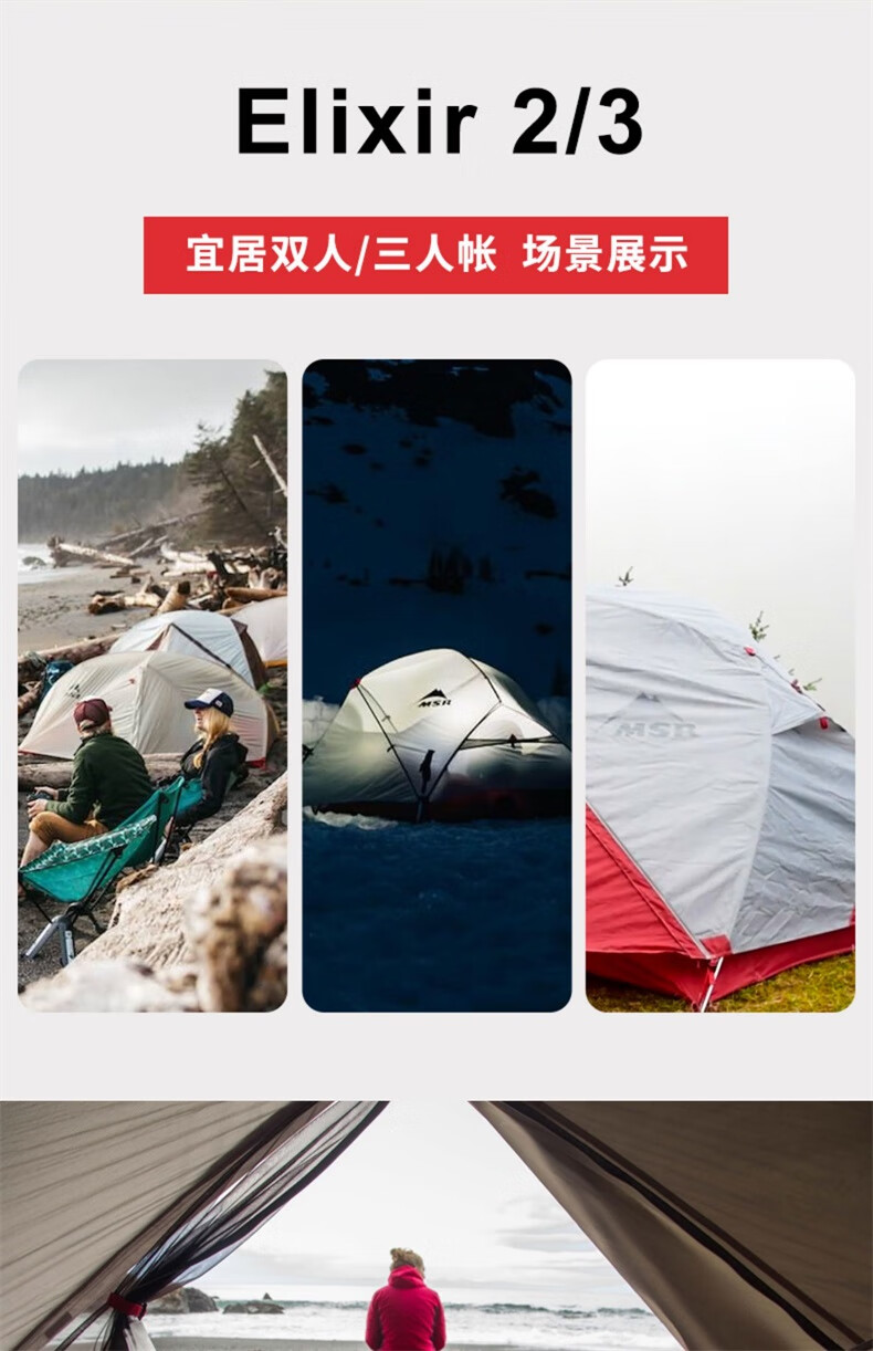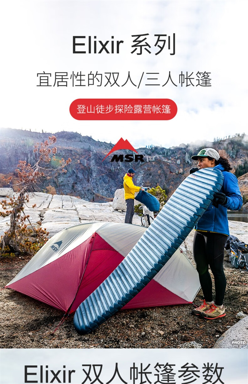 MSR帐篷户外露营装备Elixir双人徒步帐篷双层防风雨三季登山帐篷 10312-3人(含原装地席)