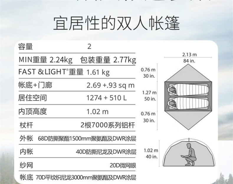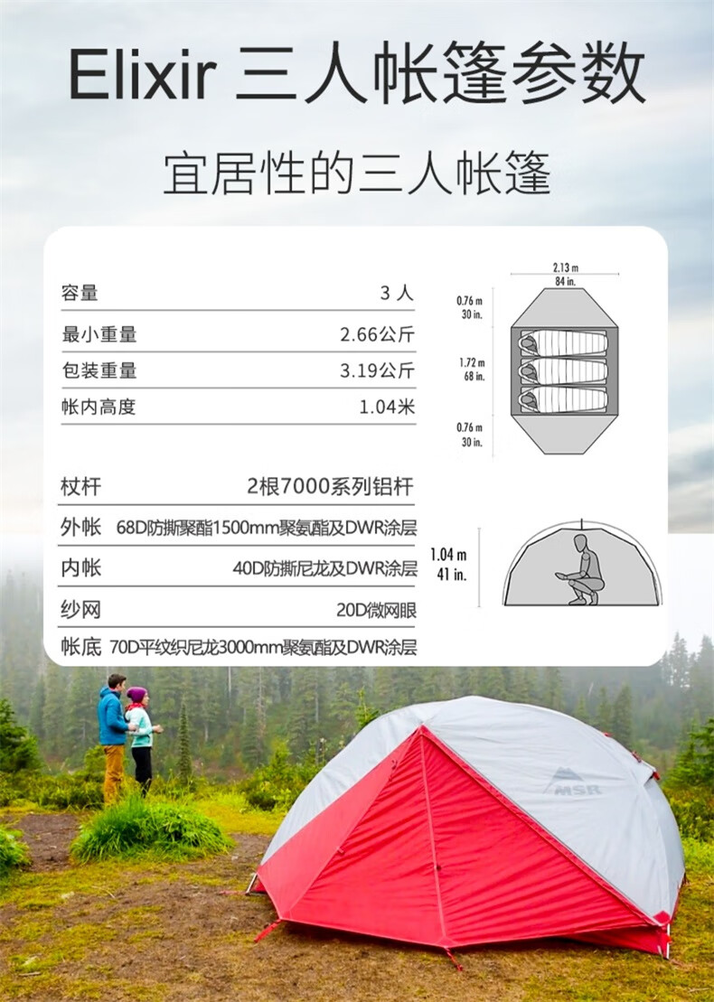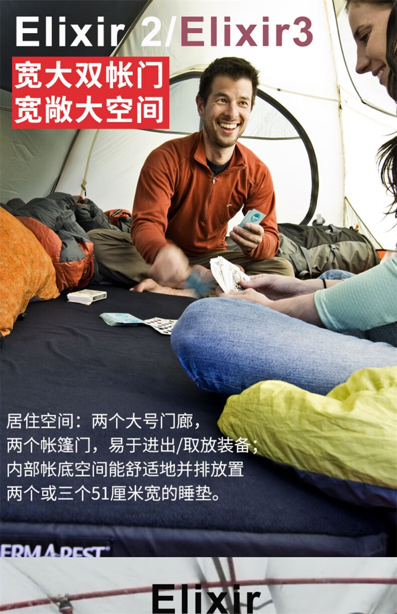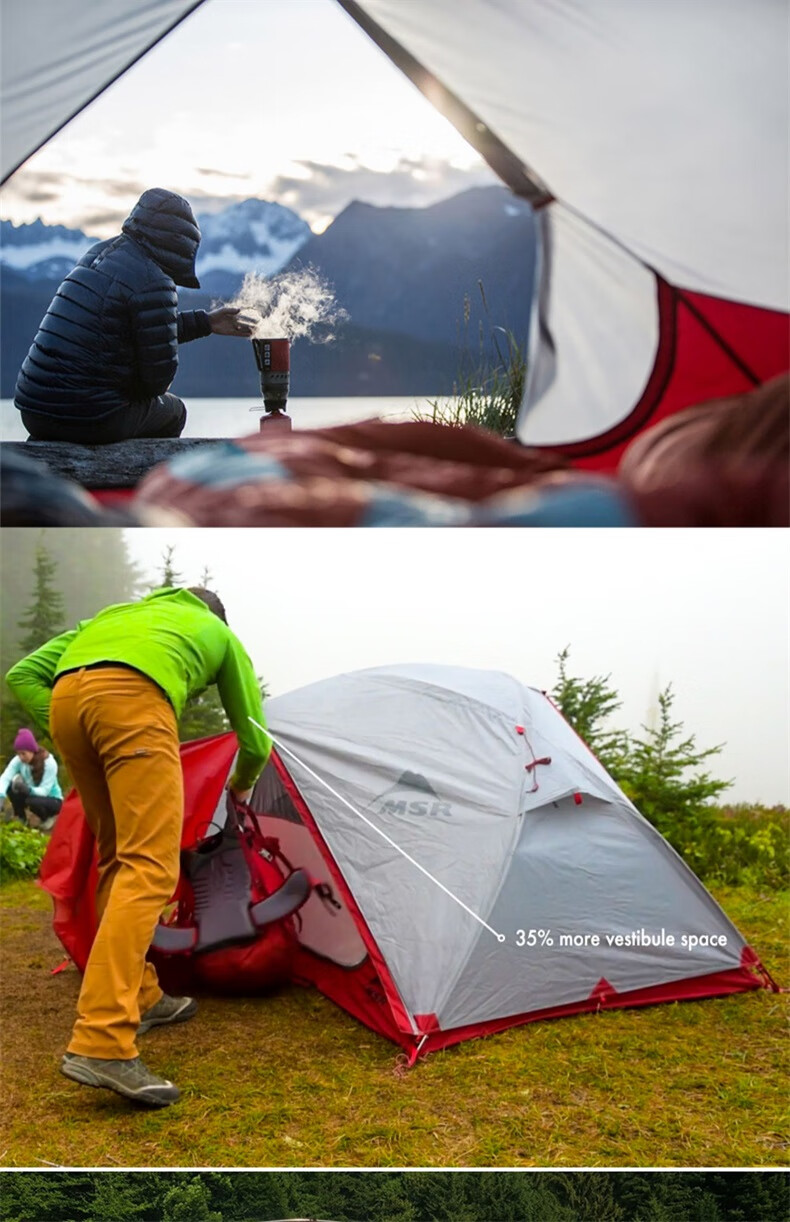 MSR帐篷户外露营装备Elixir双人徒步帐篷双层防风雨三季登山帐篷 10312-3人(含原装地席)