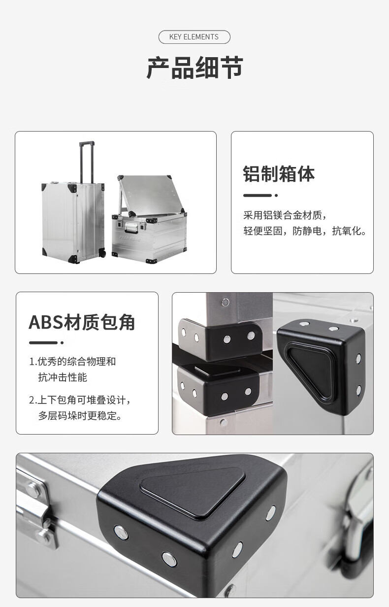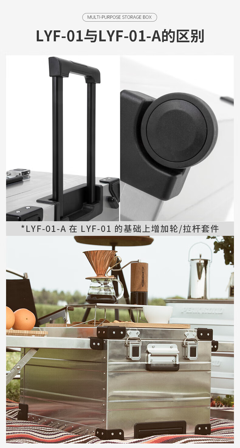 ROCKBROOK鹿布户外铝合金收纳箱改装箱露营IGT咖啡车载收纳箱|咖50周年款 灰色50L箱(不含灯架) 57.5*37.5(28.5+42.5)cm