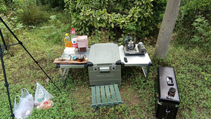 货物和原来买的箱子刚好可以使用,不错设计的。这样箱子和桌子都有了。户外做得很好。