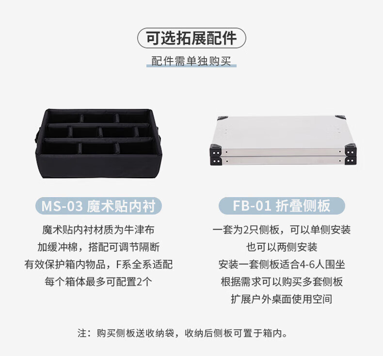 酷麦装备(PROVO)铝镁合金银色折叠桌箱车载拉杆户外露营收纳箱 MS-03魔术贴内衬收纳包(1个)