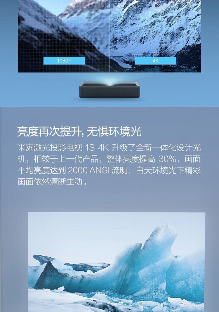 小米米家激光投影1S 4K 投影仪家用100寸120寸激光影院家庭影院 小米激光电视1S/4K高清/海外版
