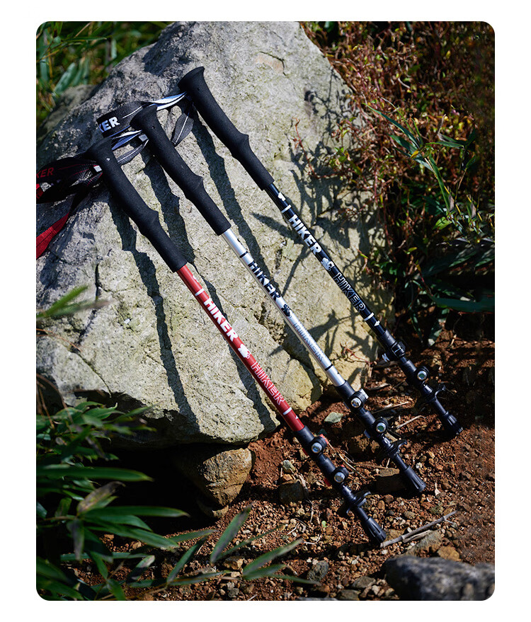 伯希和(Pelliot)HIKER户外碳素登山杖伸缩折叠防滑拐棍手杖爬山徒步16303651红色