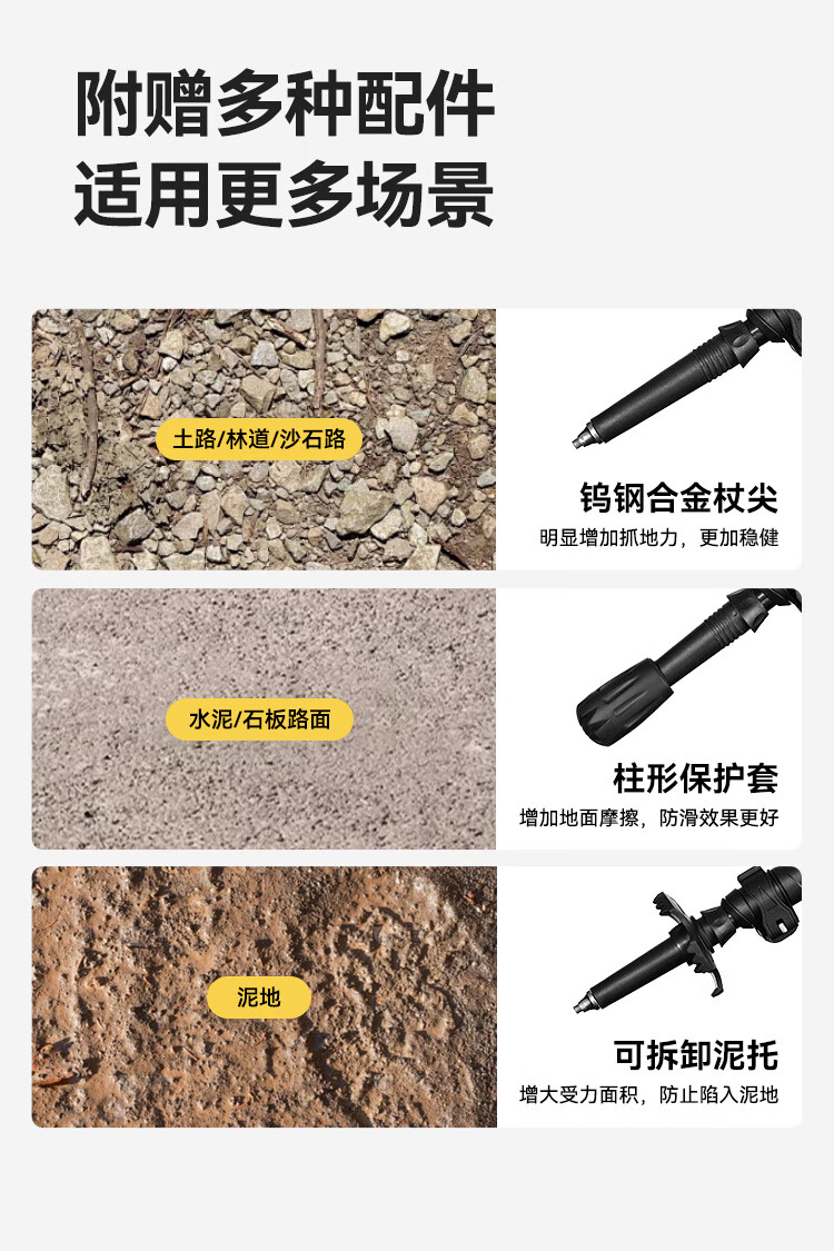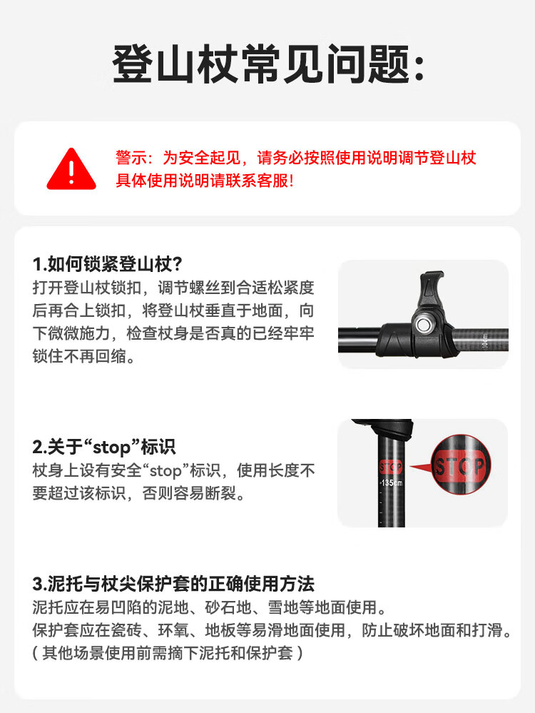 非常专业的品质,性价比好,颜值酷炫的一根登山杖。手感好,重量轻,强度有保证。适用各种路面,天气。