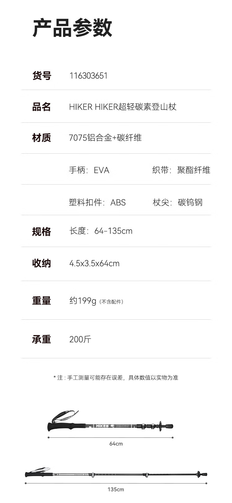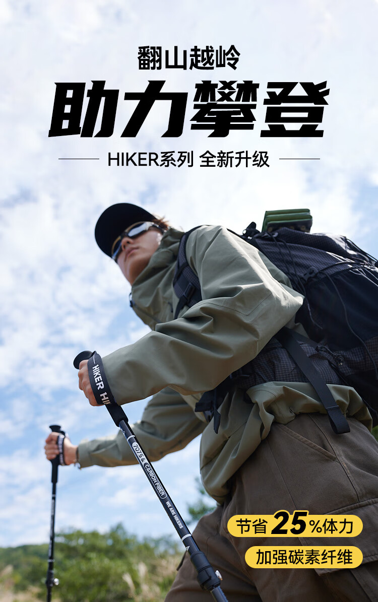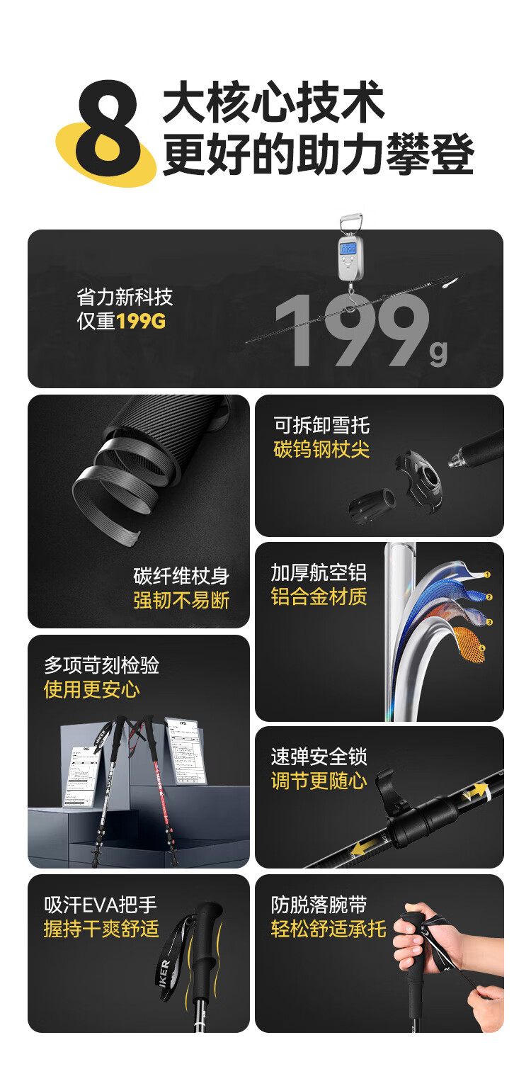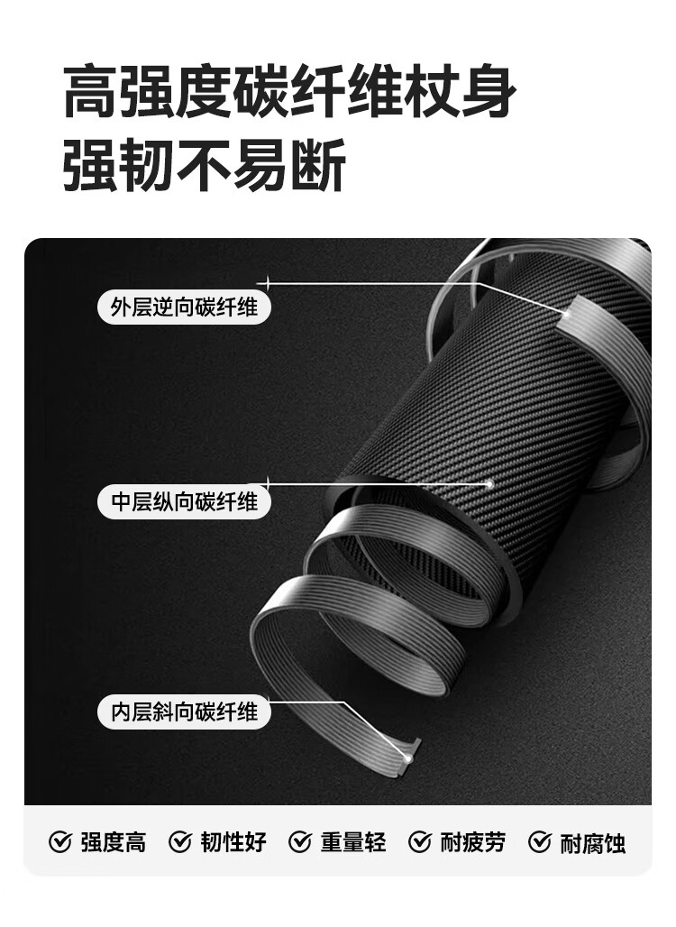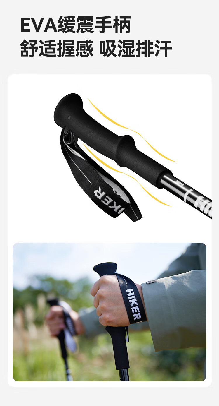黑冰户外徒步登山杖折叠碳纤维登山杖轻量便携爬山拐杖