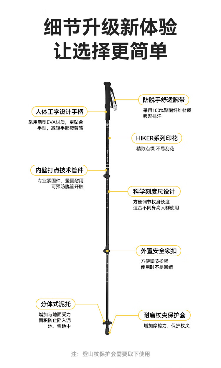 登山杖*1,挡泥托*1,杖尖保护套*1,包装袋*1