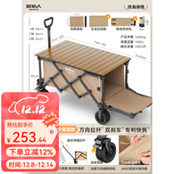 原始人(The Primitive)露营车推车户外营地拖车超大折叠手推野餐野营手拉车遛娃小拉车 180L 【卡其】后开聚拢款+桌板