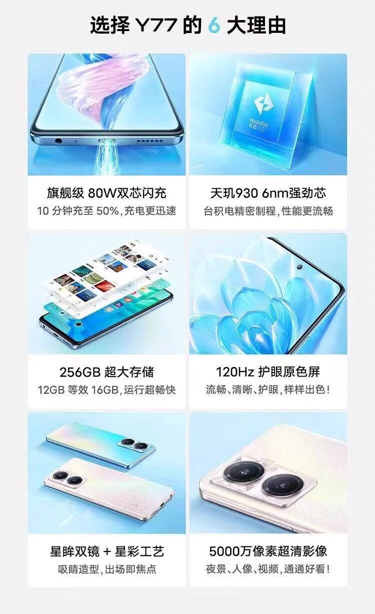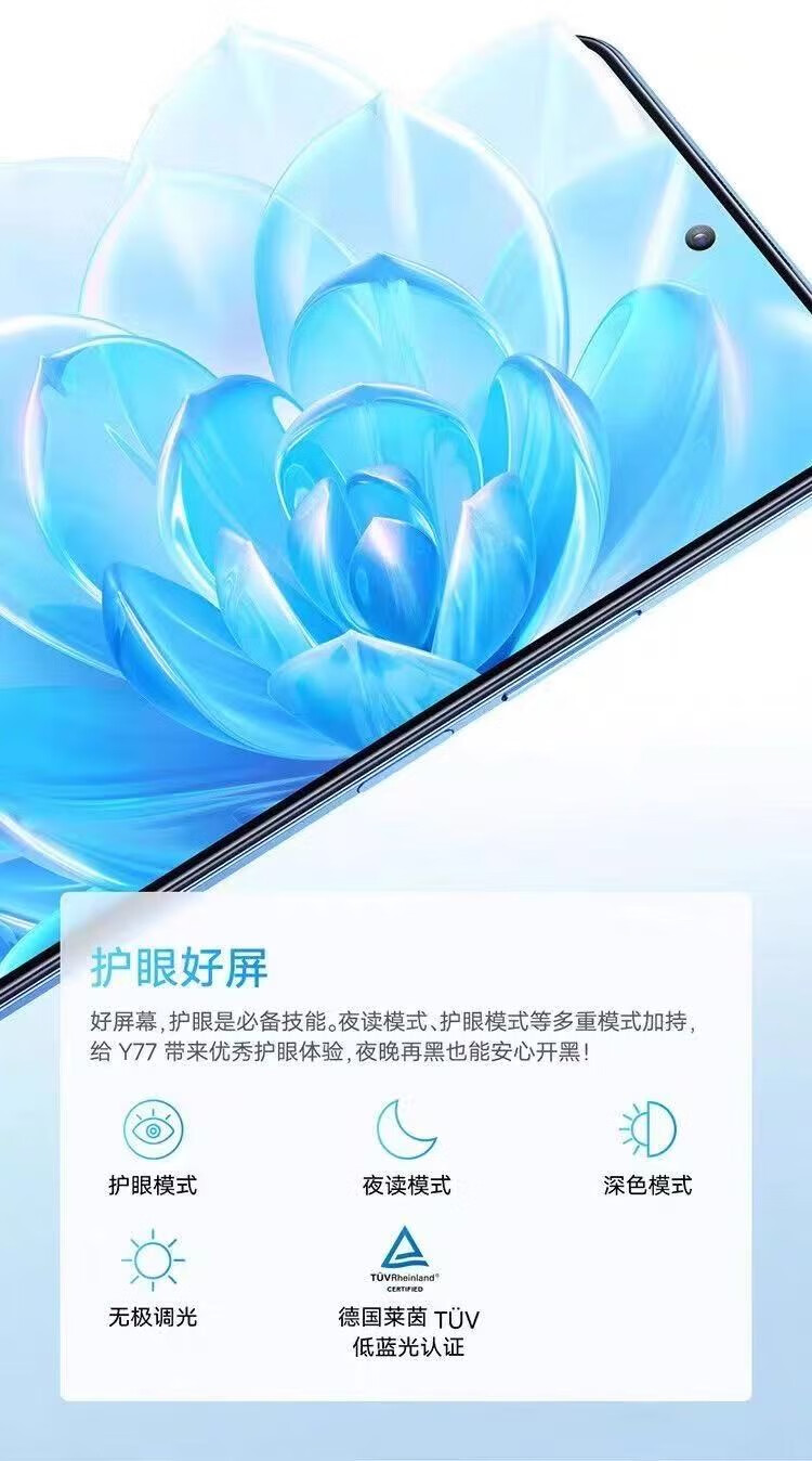 vivoY77天玑930处理器 6.64英寸120hz高刷屏超长续航5G手机 晶岩黑 8GB+128GB