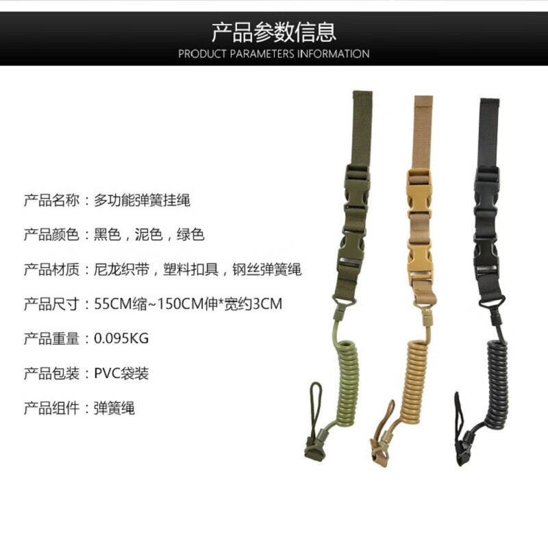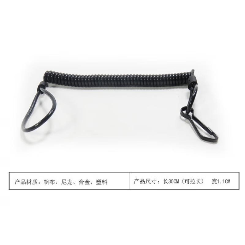 捷天下92战术伸缩枪绳防丢防抢钥匙扣枪纲不锈钢丝弹簧枪钢绳安全绳枪栓 战术枪纲绳弹簧绳黑色