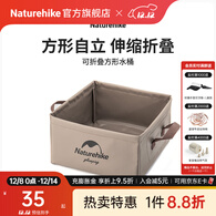 Naturehike挪客可折叠方形水桶旅行便携式水盆旅游洗脸车载露营洗菜洗衣盆 浅咖色-13L