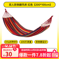 清系户外露营休闲加厚加宽帆布懒人吊床室内单双人吊床弯木防侧翻睡袋 单人红色防侧翻200*100CM