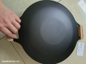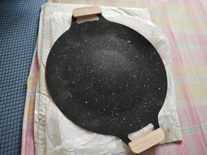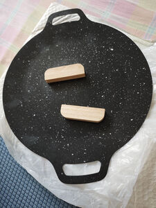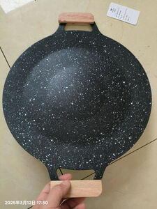配送速度快,包装完好无破损,铸铁烧烤盘,轻便型,有木手柄防烫