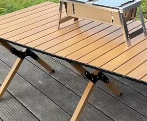 清系户外碳钢蛋卷桌折叠野餐桌轻量木纹色碳钢桌烧烤聚会露营装备 桃木色中号蛋卷桌