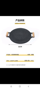 清系户外烤盘麦饭石卡式炉烤肉盘韩式铁板烧烤盘家用烤肉锅煎盘 明火款32CM+防烫木柄